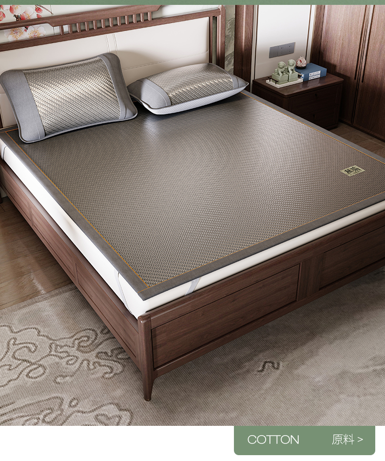 (总)绒艺席业 2026新款A类双面冰藤学生凉席-光板,光板咖,光板灰