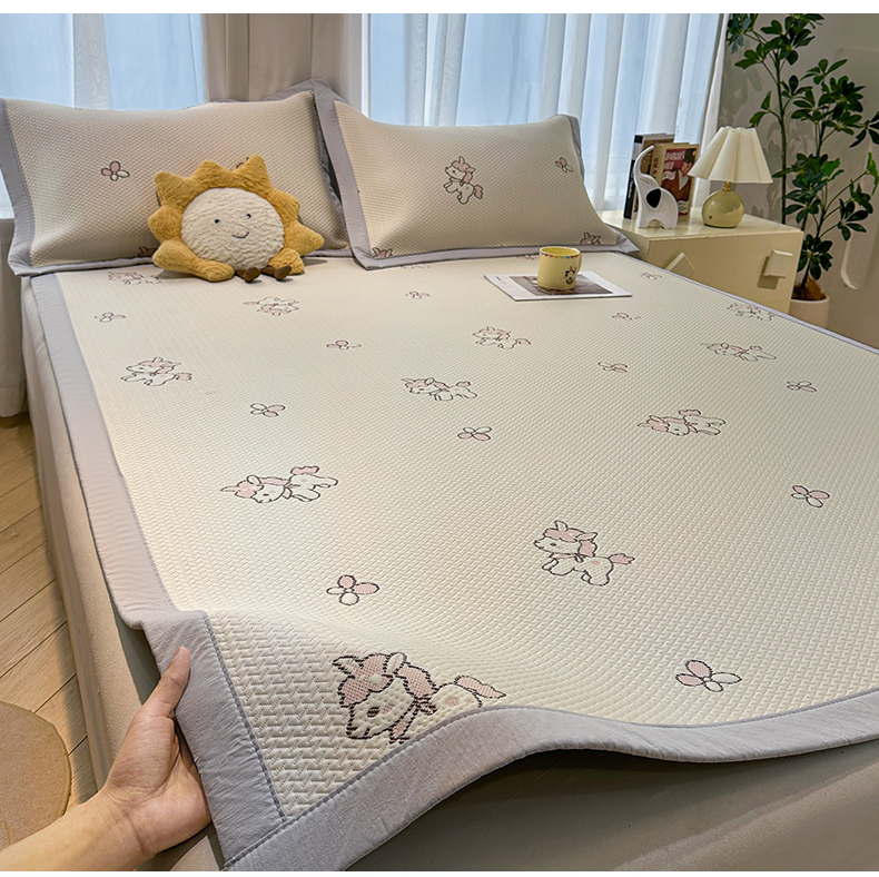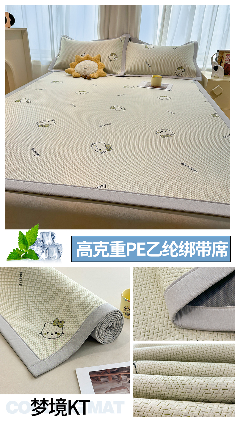 商品名称:居易简 2026新款卡通实拍小红书爆款凉豆豆凉席100%PE 乙纶凉感可水洗床席席子-床席款 粉独角兽