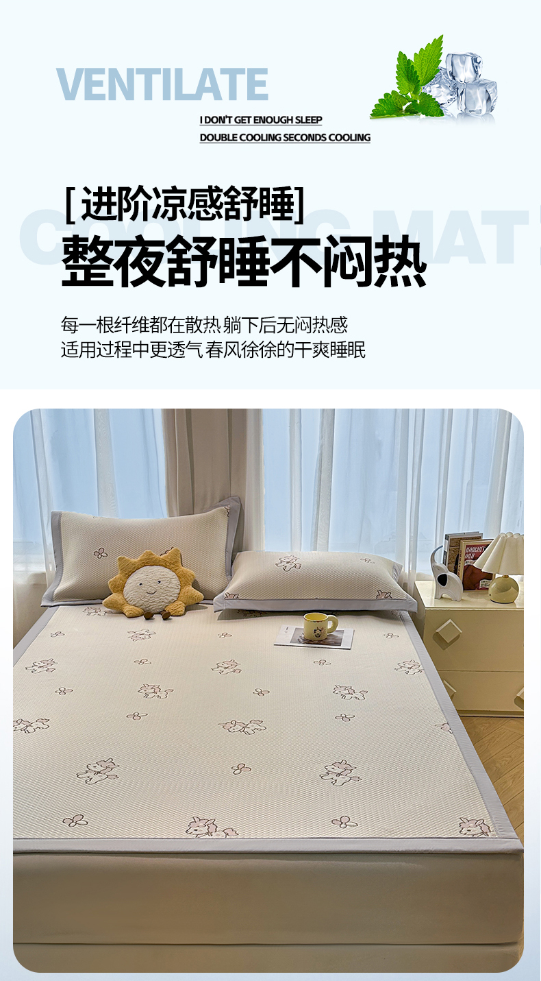(总)居易简2026新款卡通实拍小红书爆款凉豆豆凉席100%PE 乙纶凉感可水洗床席席子-床笠款,腊肠小狗,粉独角兽,可爱布布,蓝蓝小熊,梦境KT,条纹小象