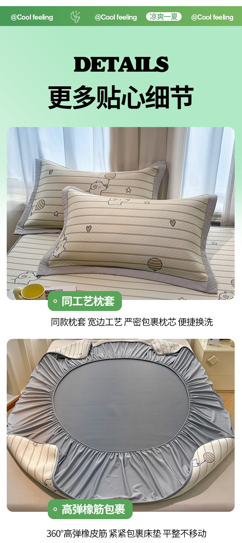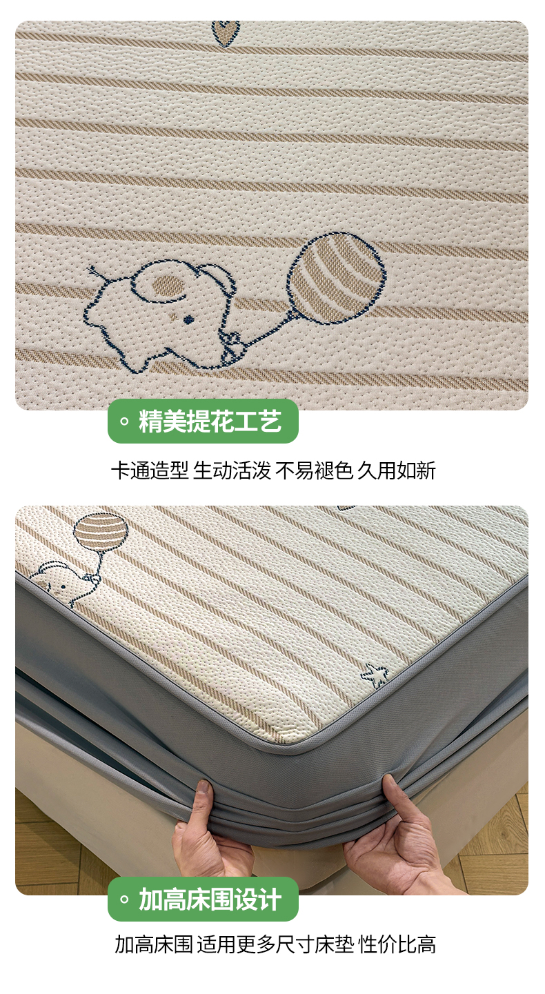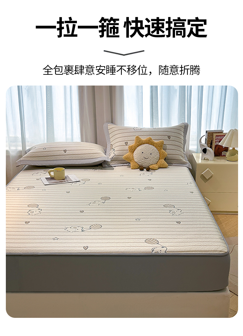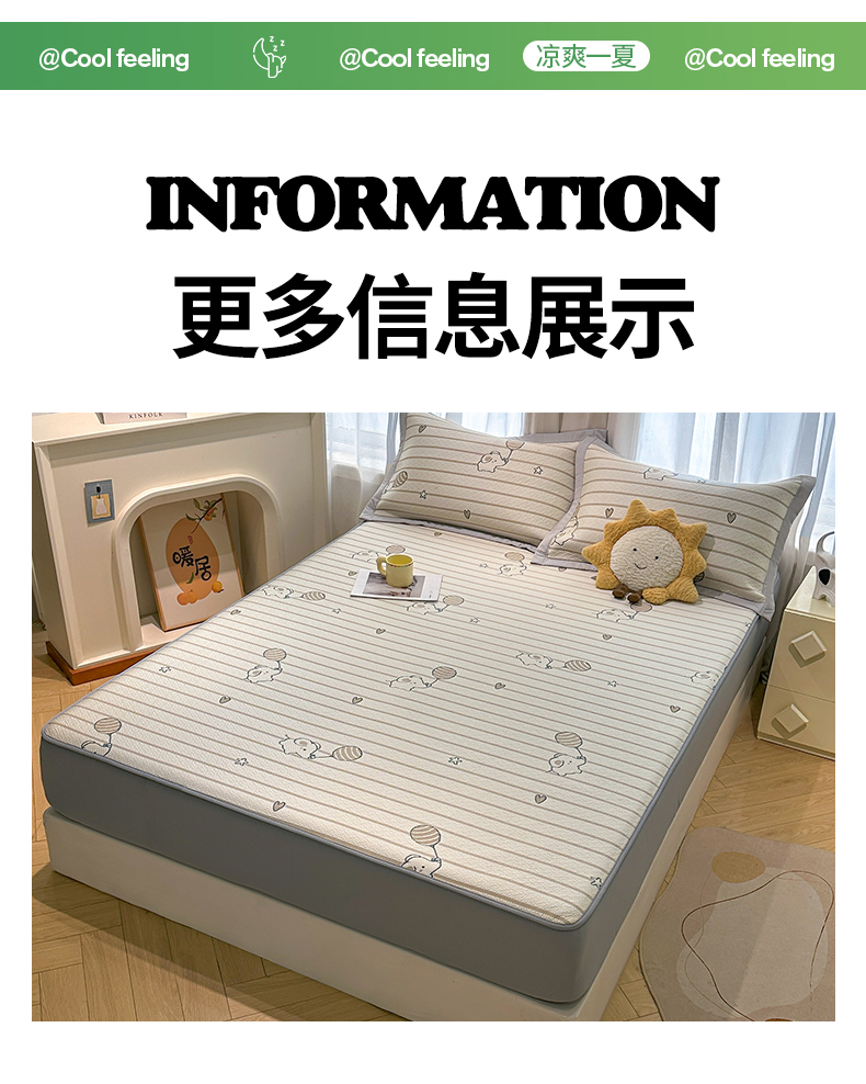 商品名称:居易简 2026新款卡通实拍小红书爆款凉豆豆凉席100%PE 乙纶凉感可水洗床席席子-床笠款 条纹小象