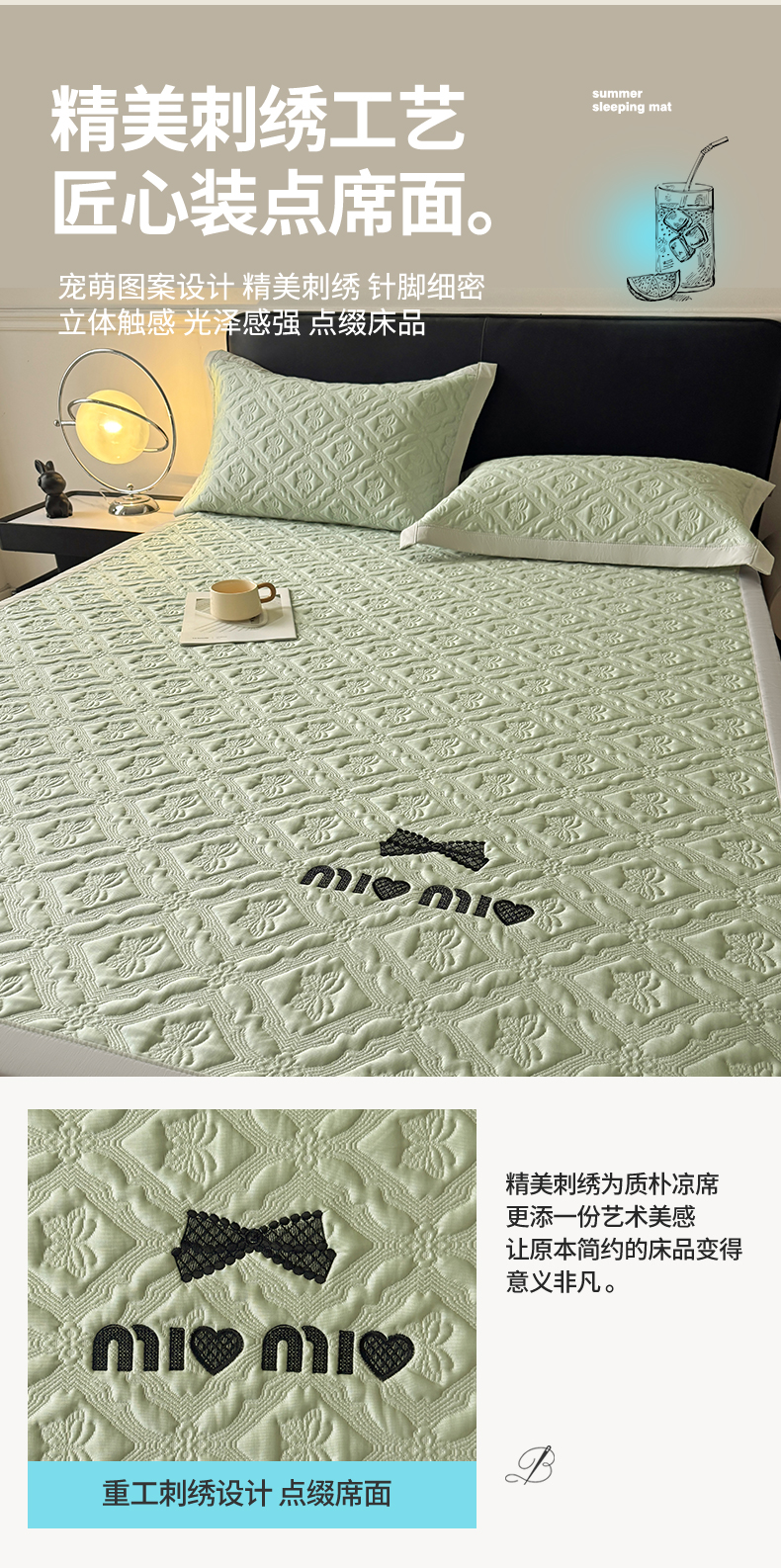 (总)居易简 2026新款刺绣实拍爆款凉豆豆凉席100%PE乙伦绣花可水洗床席席子-床笠款,蝶韵 冰浅灰-床笠款,蝶韵 冰清绿-床笠款,蝶韵 冰雾蓝-床笠款,蝶韵 冰雾紫-床笠款,蝶韵 冰云粉-床笠款,菱格 冰浅灰-床笠款,菱格 冰清绿-床笠款