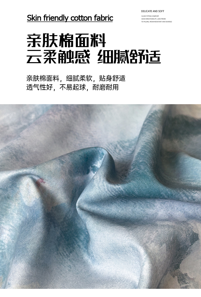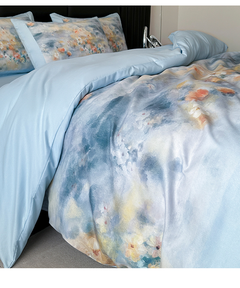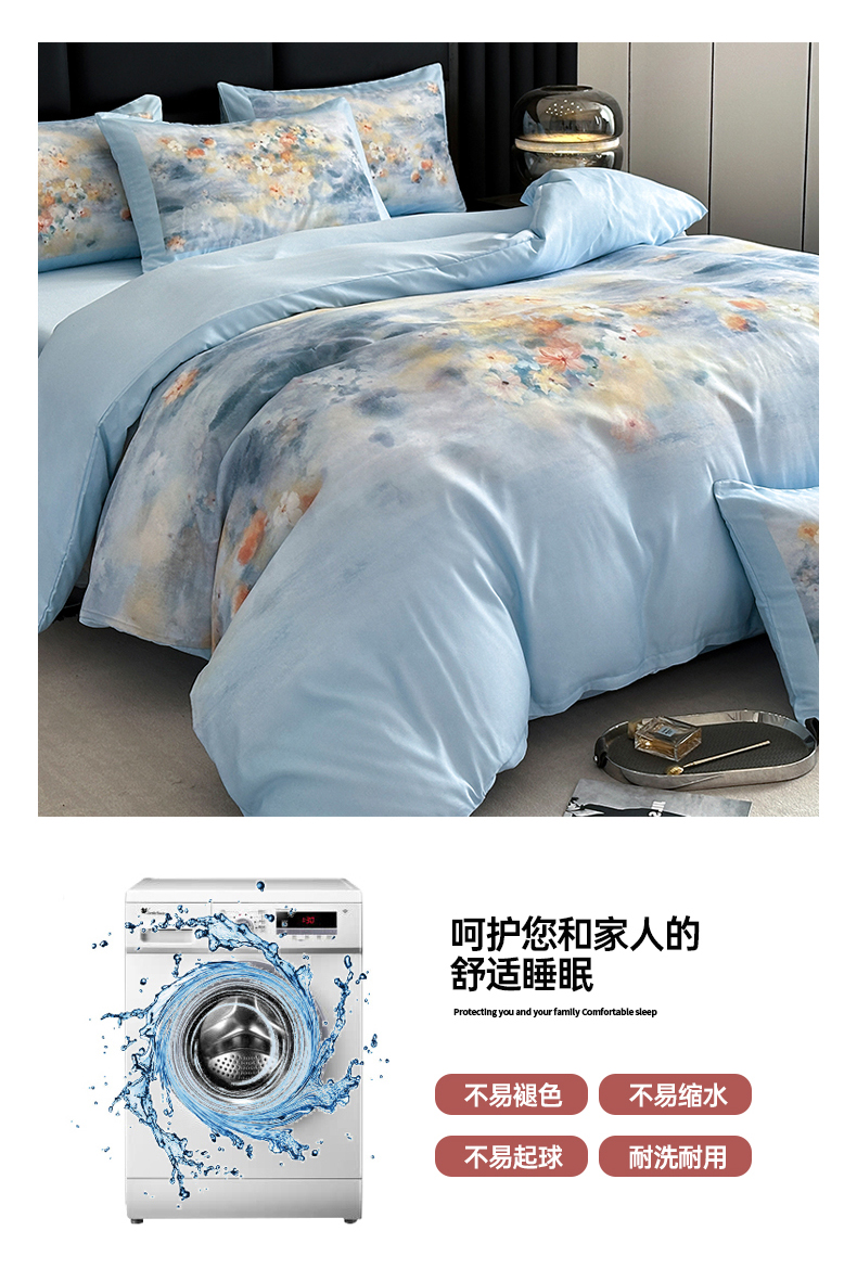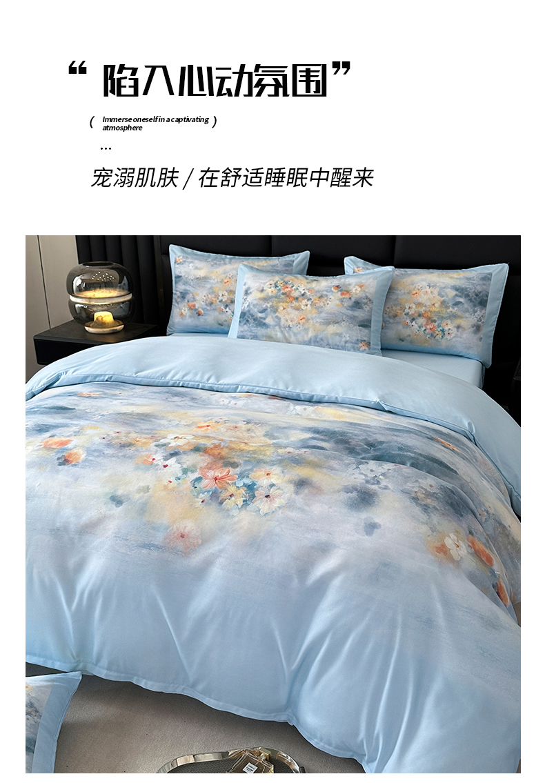 商品名称:经年 2026春夏新款亲肤棉加厚磨毛数码印花四件套-倾城 倾城-蓝色