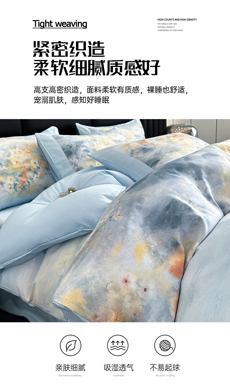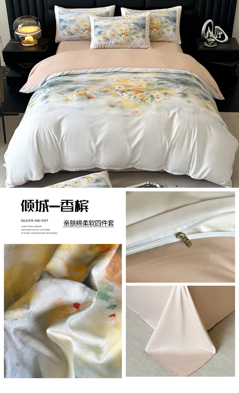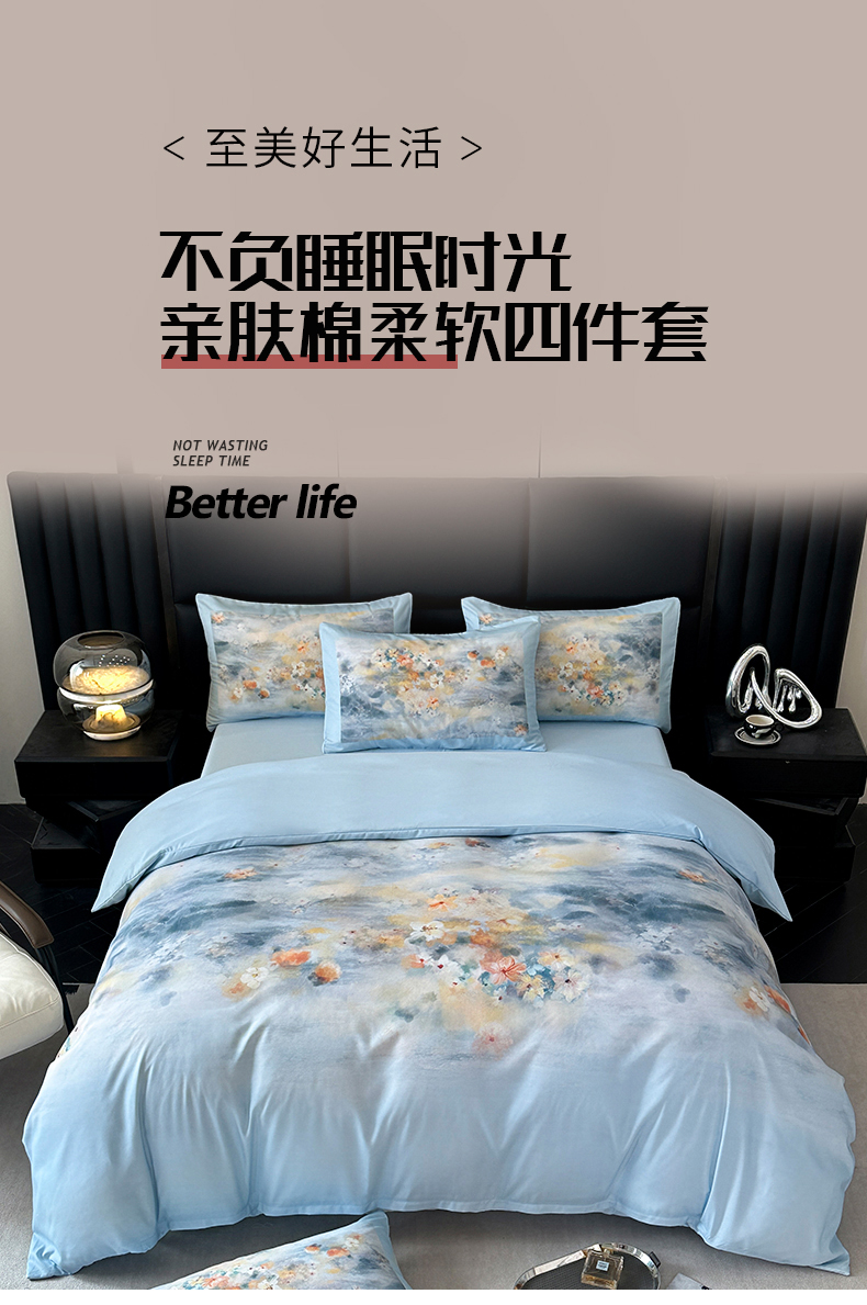 (总)经年 2026春夏新款亲肤棉数码印花四件套-流星,流星-浅灰,流星-粉,流星-蓝,流星-香槟