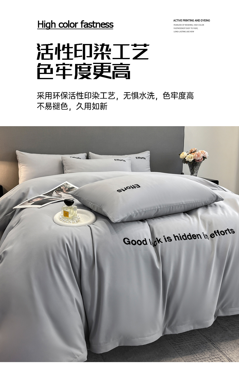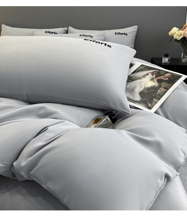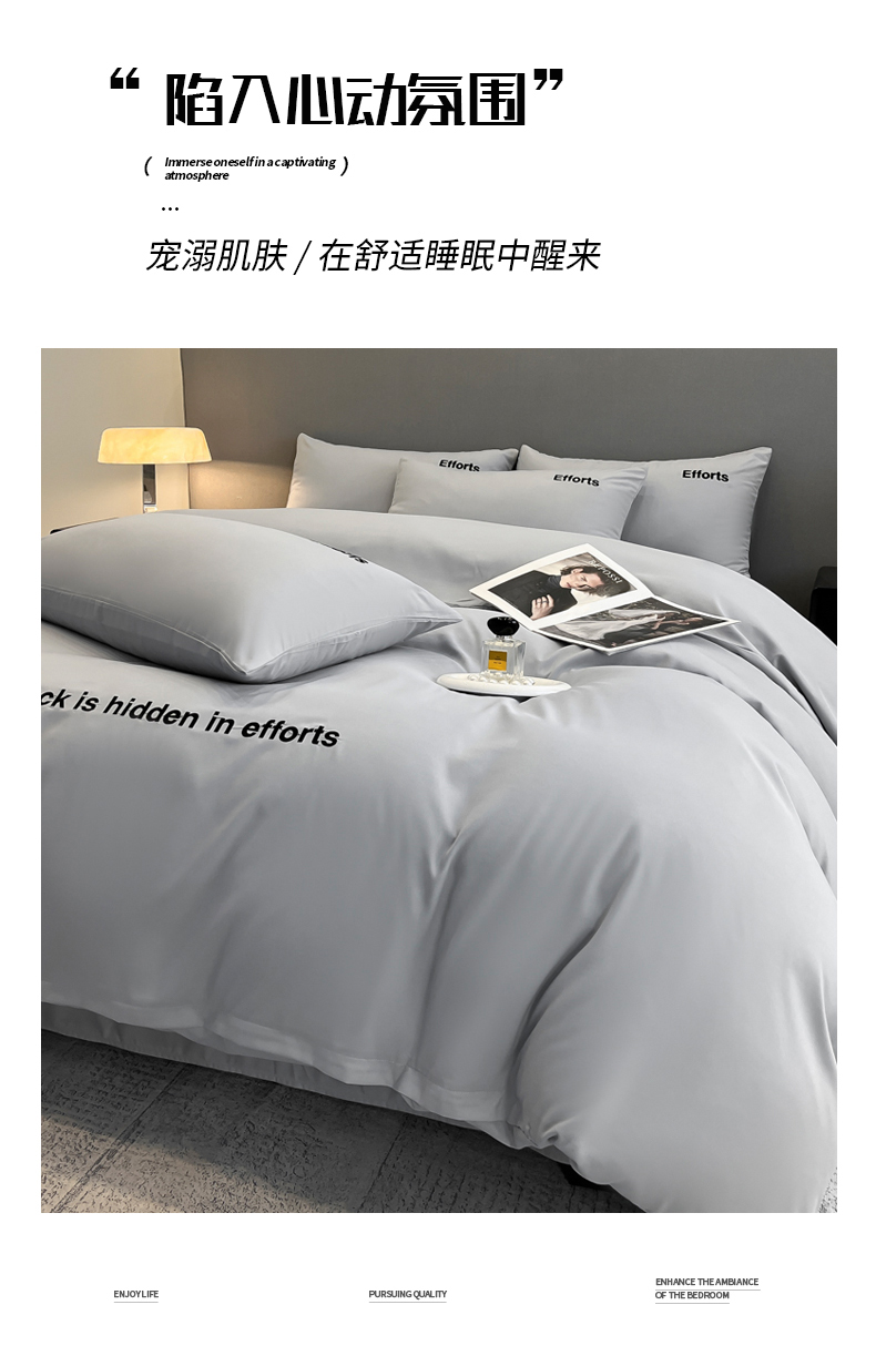 经年 2026春夏新款亲肤棉加厚磨毛刺绣四件套-励志 励志-浅灰