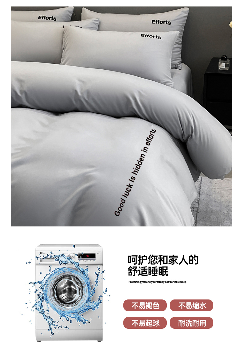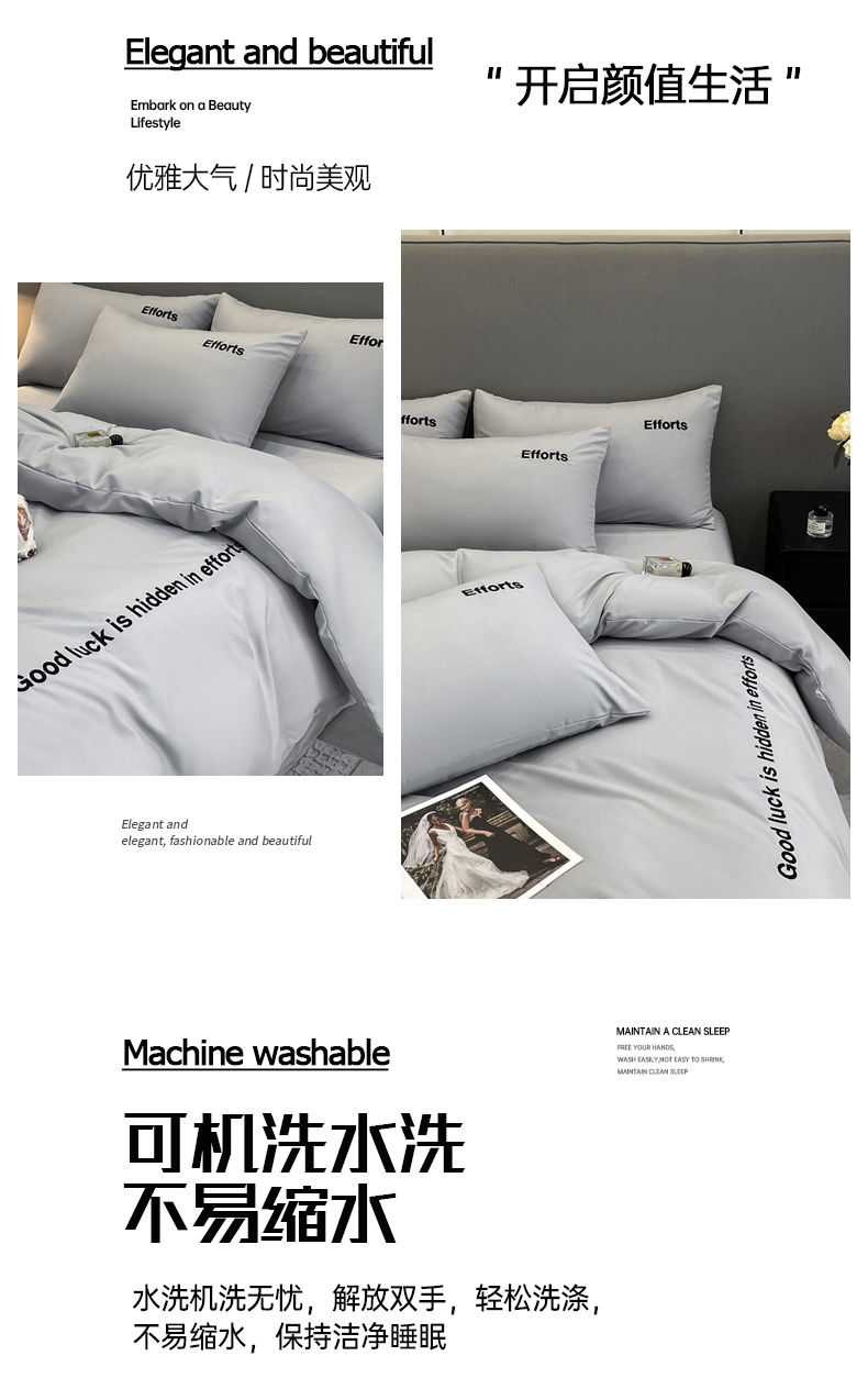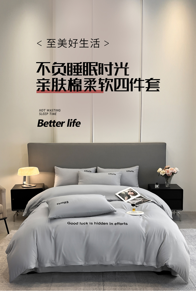 商品名称:经年 2026春夏新款亲肤棉加厚磨毛刺绣四件套-励志 励志-浅灰