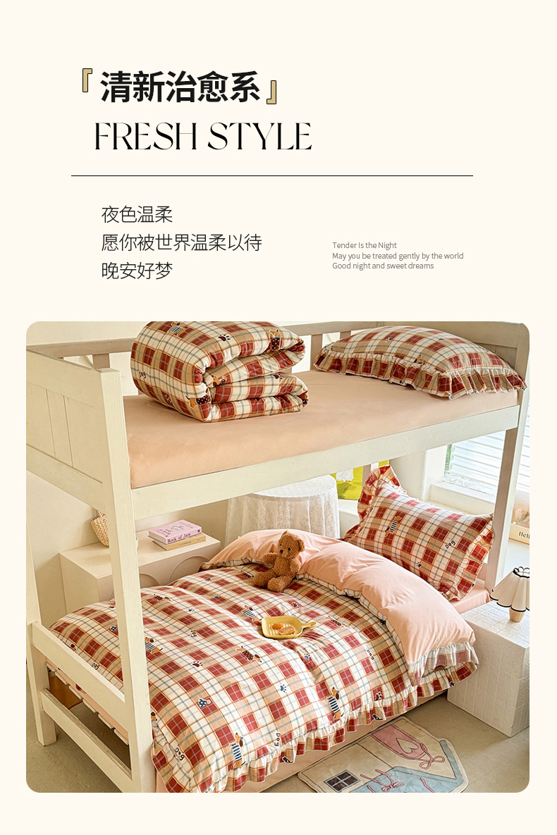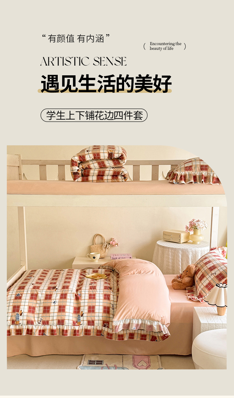 当前位置: 91家纺网 > 商品网购 > 床品套件 > 四件套 > 水洗棉四件套 > 经年 2026新款学生季上下铺韩版花边水洗云朵棉学生宿舍三件套四件套 苏兰咖格狗