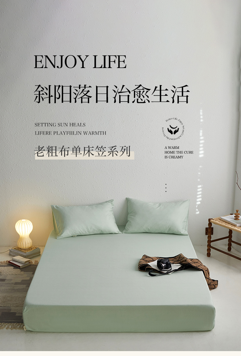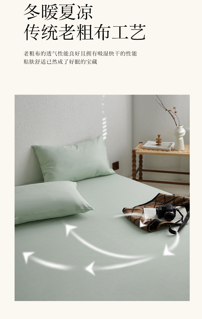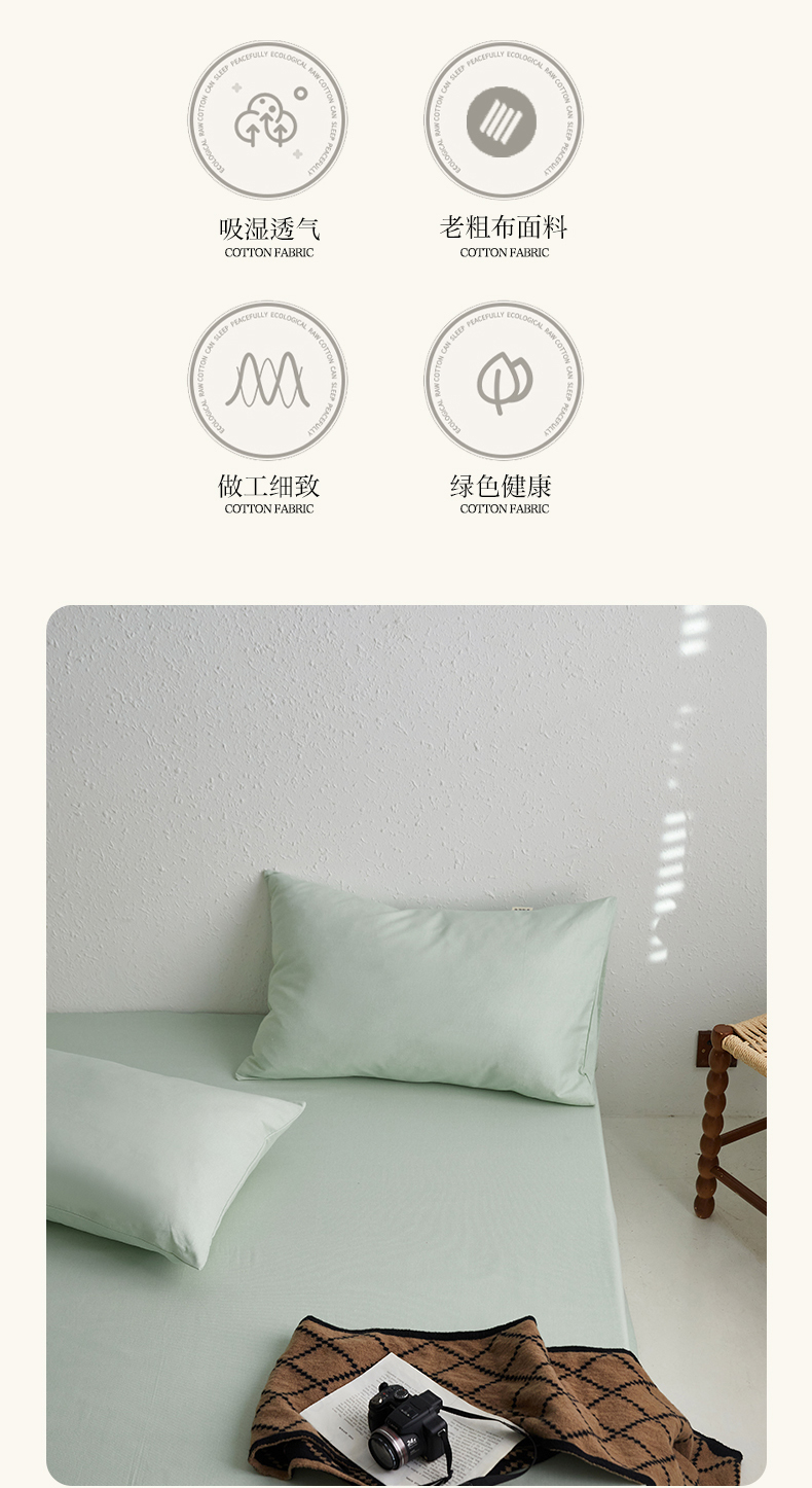 商品名称:小懒猪 2026新品全棉纯棉老粗布单品床笠床笠单件凉席席子 月白绿