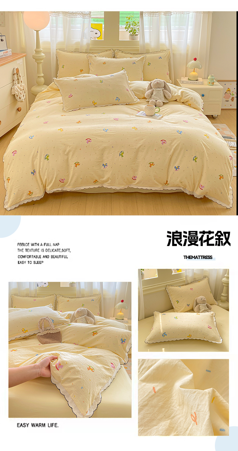 (总)豫见家纺 2026新款古法水洗仿棉云感纱四件套,小鱼心事,爱心格纹,安妮碎花,豹纹咖,彩波波,彩心心,草莓点点,晨露,初夏,梵高映像,乖巧KT-粉,乖巧KT-蓝,赫莲娜,灰条樱桃,吉米兔-灰,吉米兔-紫,浆果,兰枝玉树,梦屿,秘密花园,蜜恋樱桃,木马乐园,南瓜派,千野合,甜心乐园,晚安小星星,夏日初恋,小黄花,小猫钓鱼,小幸福,樱川桃井,知秋