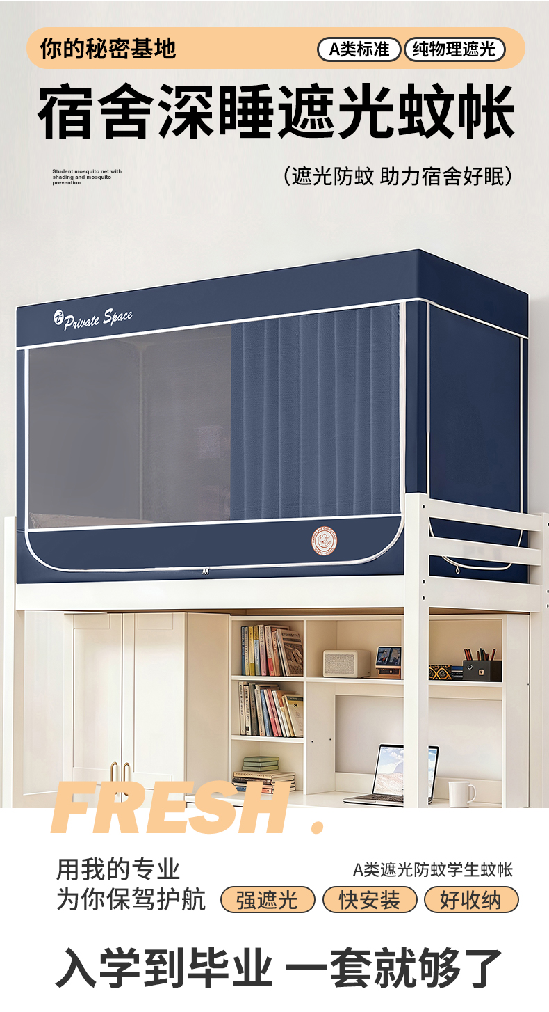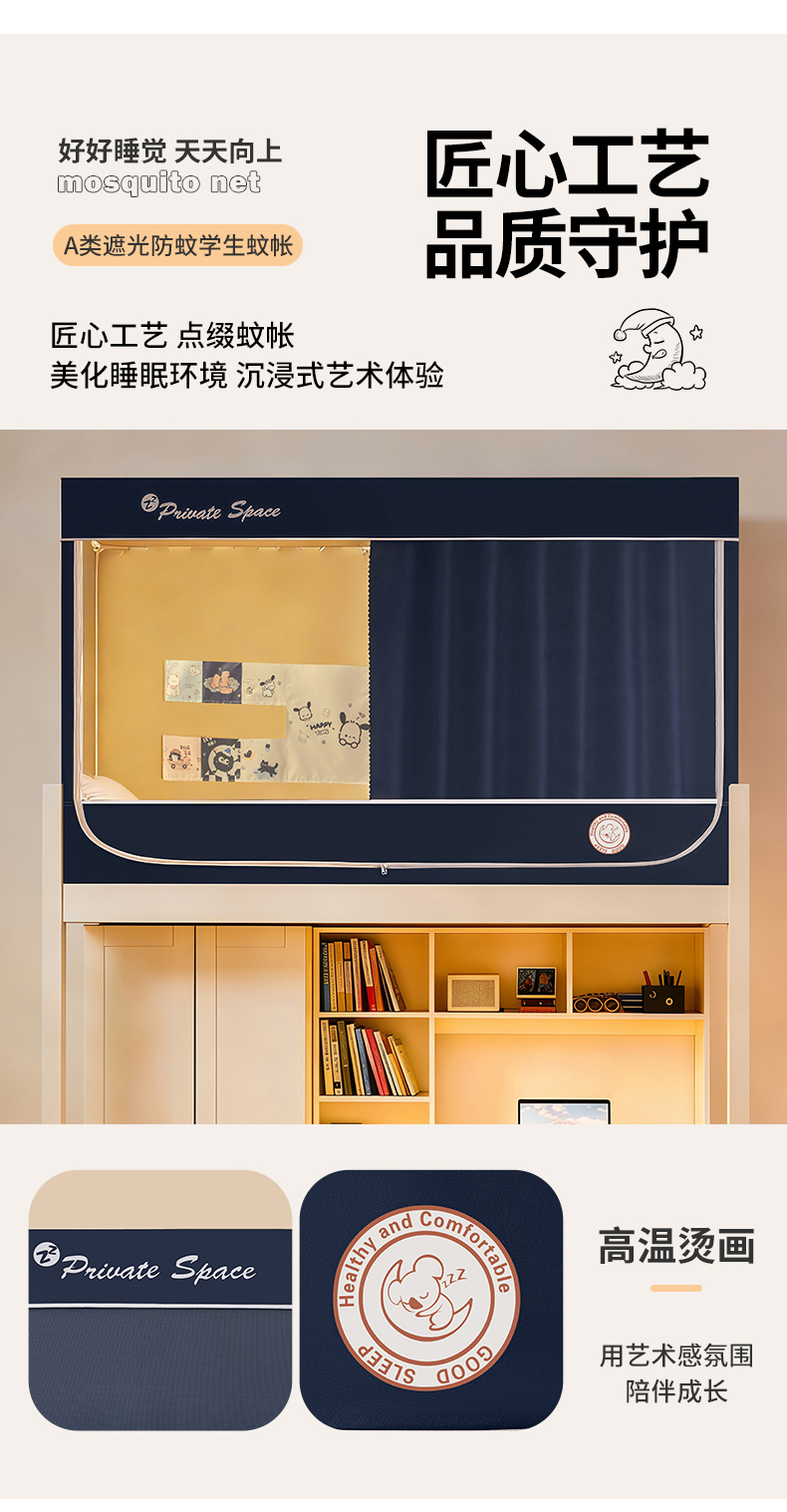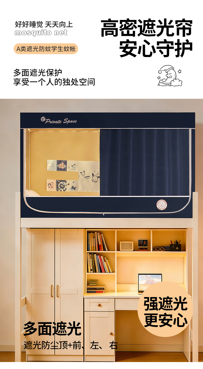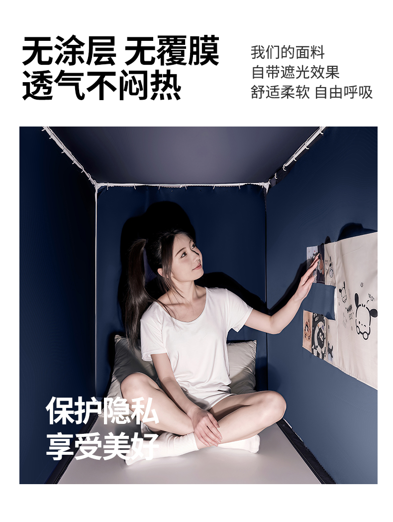 当前位置: 91家纺网 > 商品网购 > 床上用品 > 蚊帐 > 坐床式蚊帐 > 壹和 2026新款纯物理无涂层无覆膜款遮光防蚊学生坐床蚊帐(场景二) 靛蓝