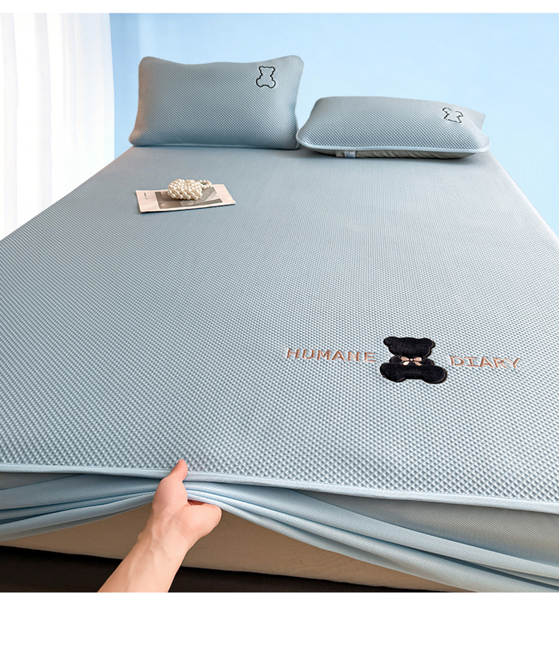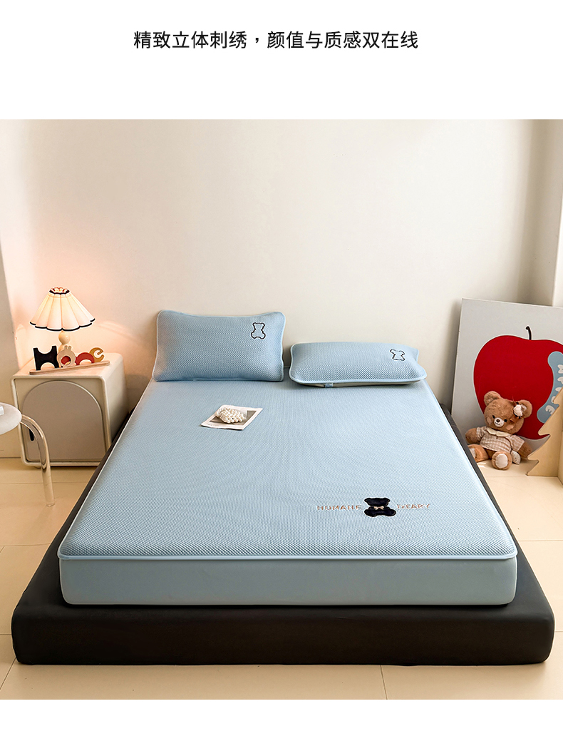 (总)雯豆家纺 2026新款PE中分子绣花床笠三件套夏季凉感豆豆席子床罩-墨仔熊,墨仔熊床笠款-灰,墨仔熊床笠款-蓝,墨仔熊床笠款-粉,墨仔熊床笠款-绿