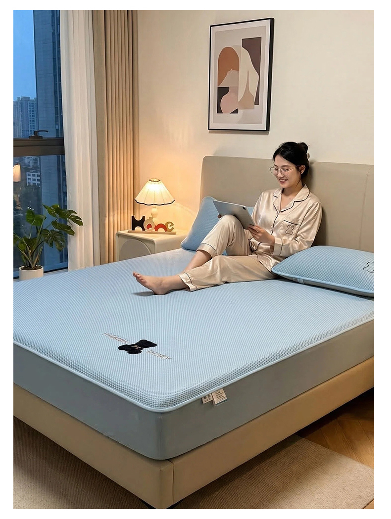 • 91家纺网 家纺一手货源 找家纺 (总)雯豆家纺 2026春夏新款凉感丝豆豆床笠三件套加厚三明治床垫保护套,凉感丝豆豆床笠-柏林蓝,凉感丝豆豆床笠-薄雾灰,凉感丝豆豆床笠-冰川灰,凉感丝豆豆床笠-春辰绿,凉感丝豆豆床笠-海港蓝,凉感丝豆豆床笠-莫奈咖,凉感丝豆豆床笠-胭脂粉