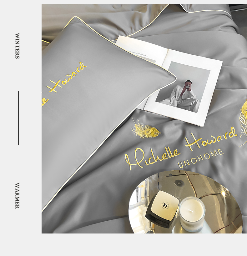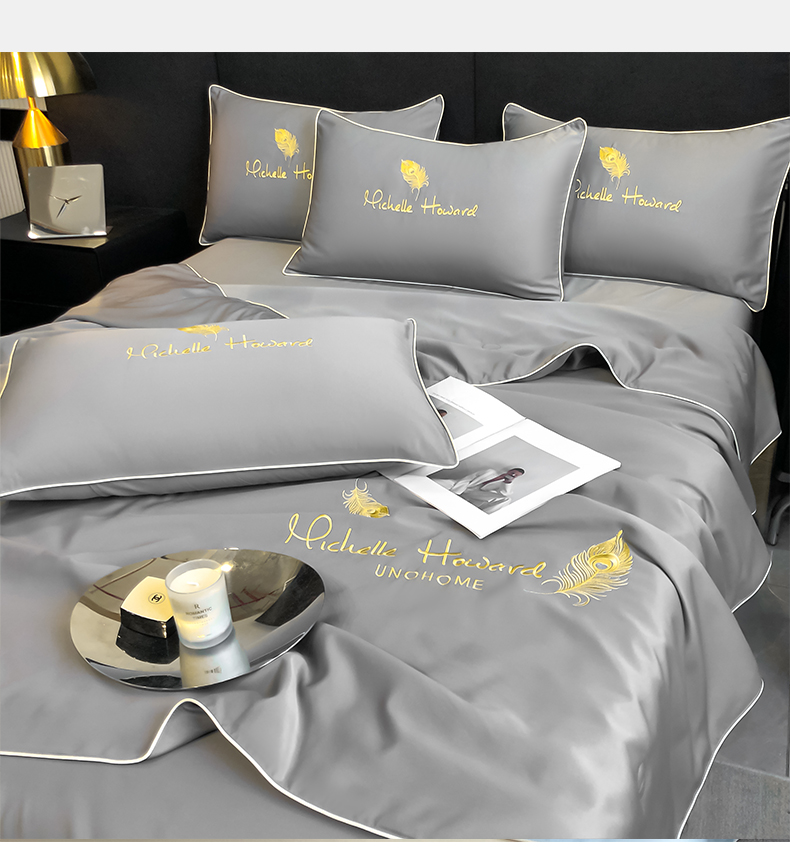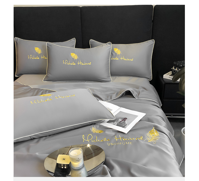 吾诺家居 2026新款双拼及羽毛刺绣夏被夏凉被空调被四件套-柔羽 羽毛经典灰