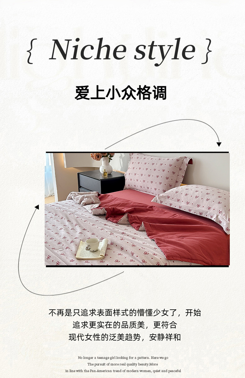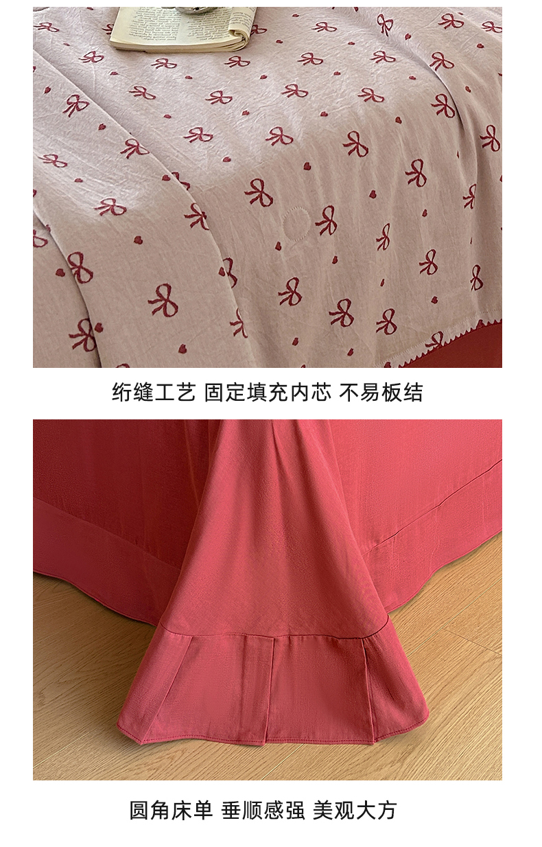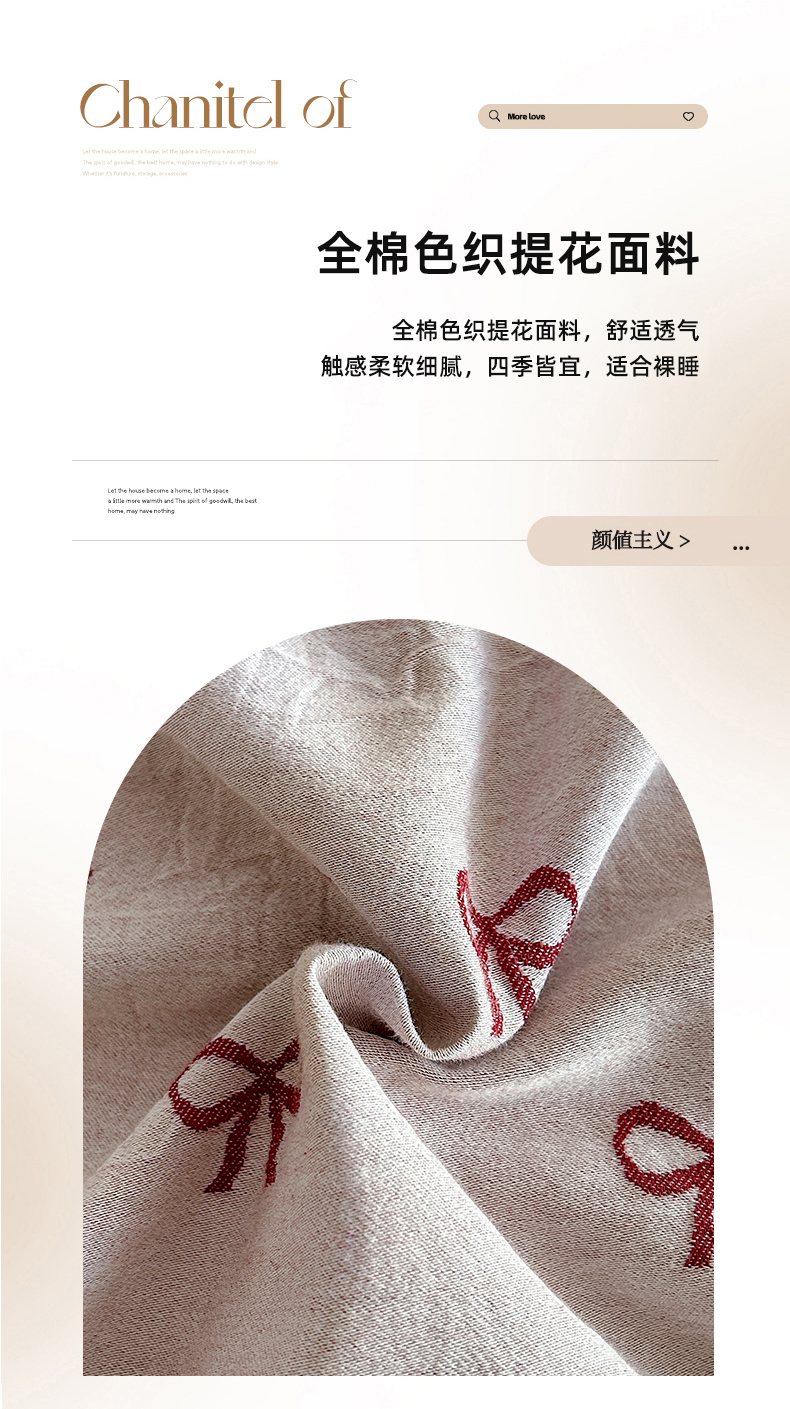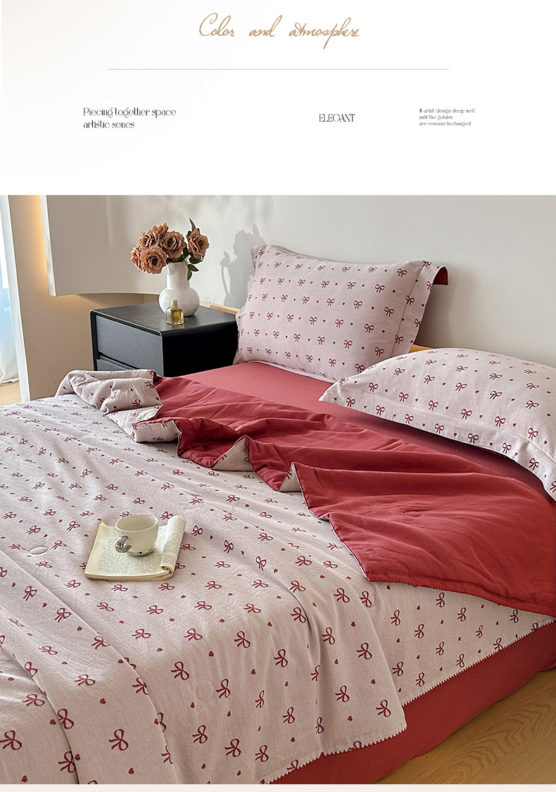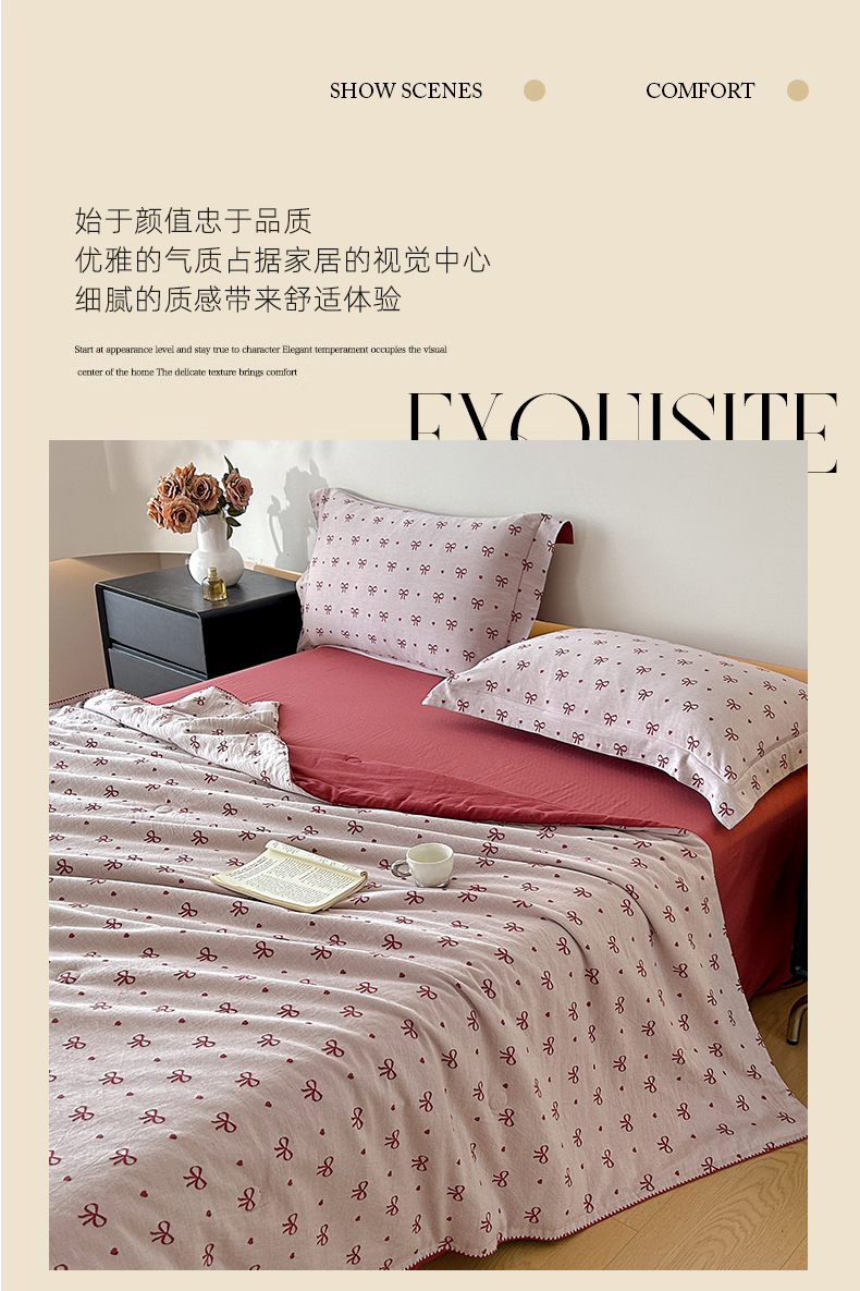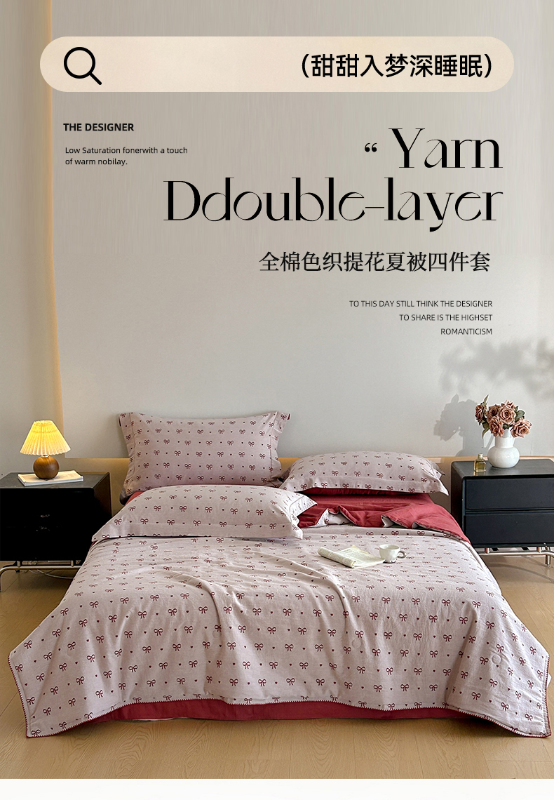 • 91家纺网 家纺一手货源 找家纺 禾时 2026春夏新品色织提花夏被夏凉被空调被四件套(配全棉纱布) 蝴蝶结(酒红)