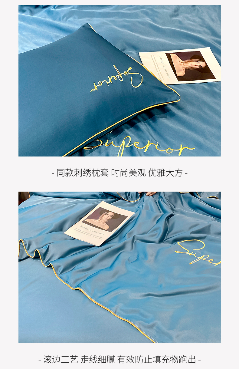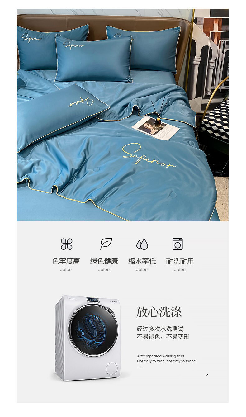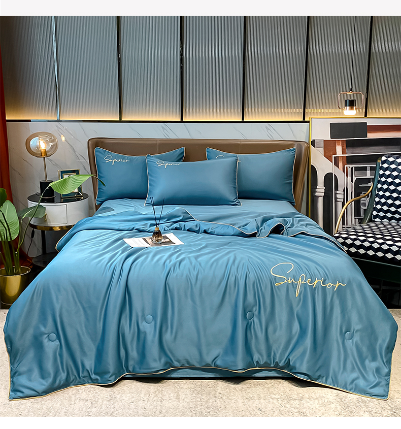 • 91家纺网 家纺一手货源 找家纺 吾诺家居 2026新款字母刺绣水洗天丝夏被夏凉被空调被四件套-字母 字母静谧蓝