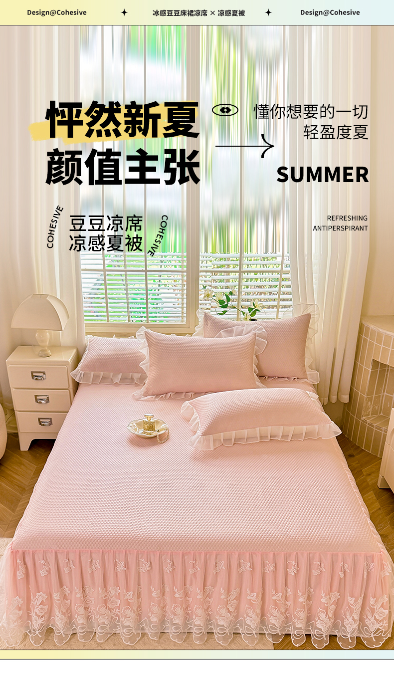 (总)后庭寝室 2026新款冰感豆豆床裙凉席夏被空调被四件套-花语系列,花语-嫩玉,花语-粉色,花语-米色,花语-嫩黄,花语-浅灰,花语-浅蓝,花语-浅紫,花语-水绿
