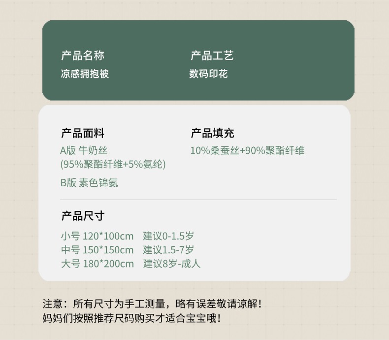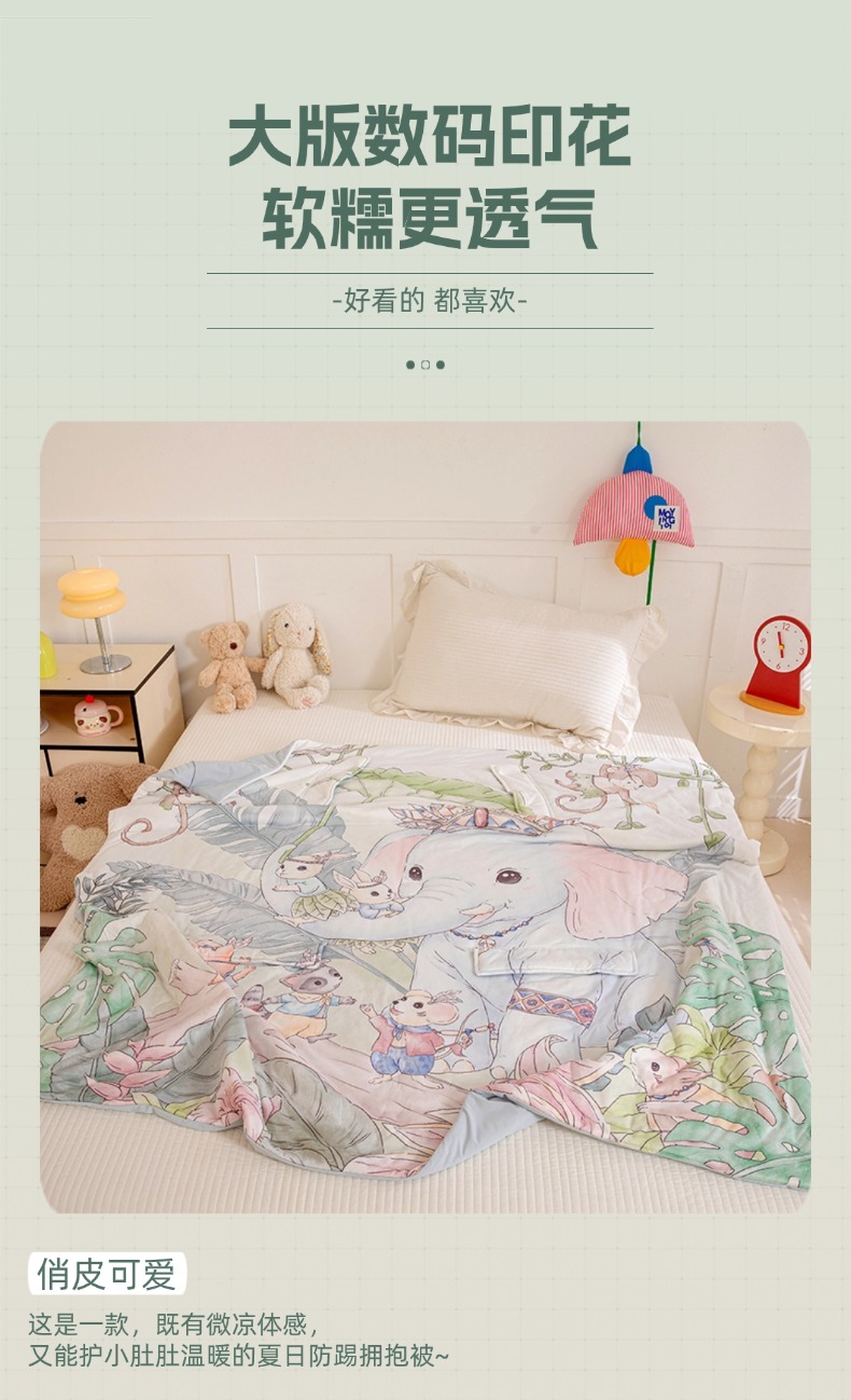 商品名称:十九色 2026新款数码大版锦氨凉感防踢被拥抱被夏凉被夏被空调被 丛林小伙伴
