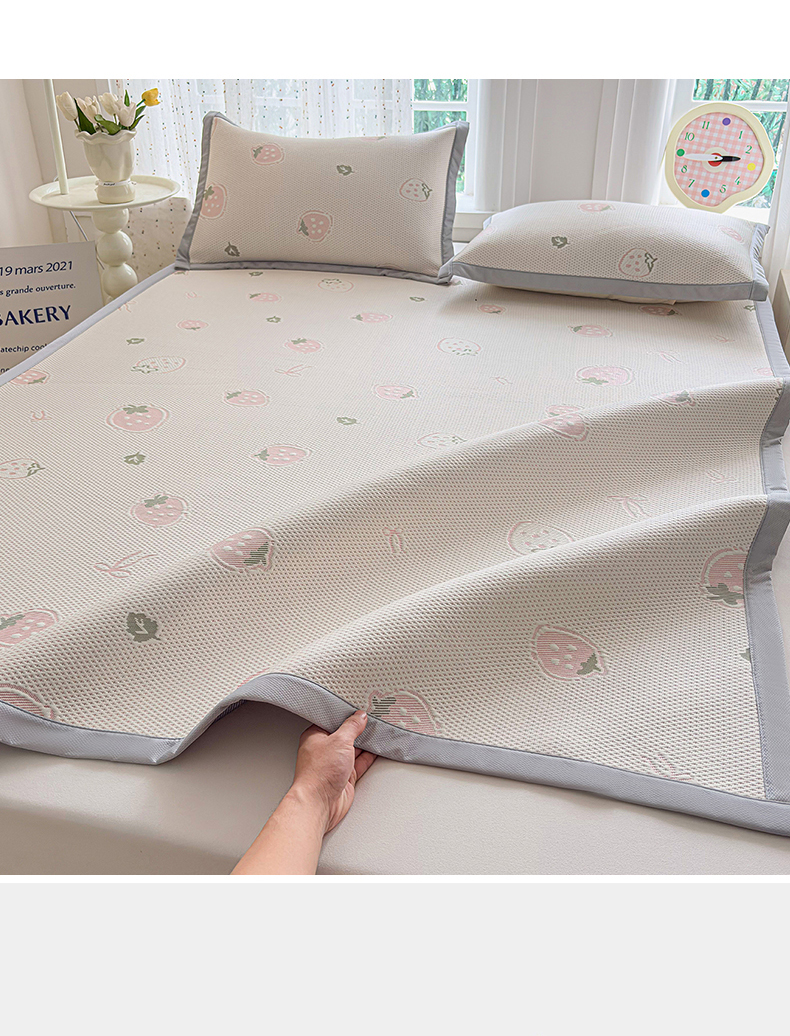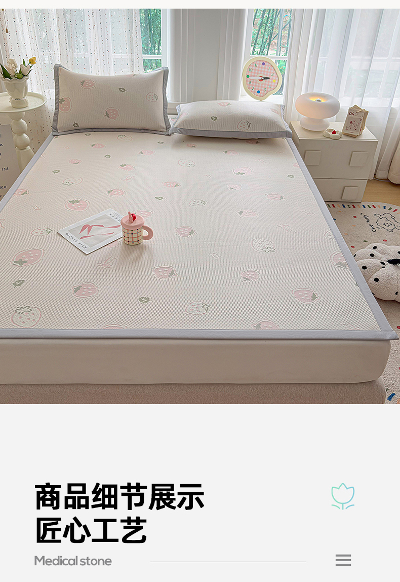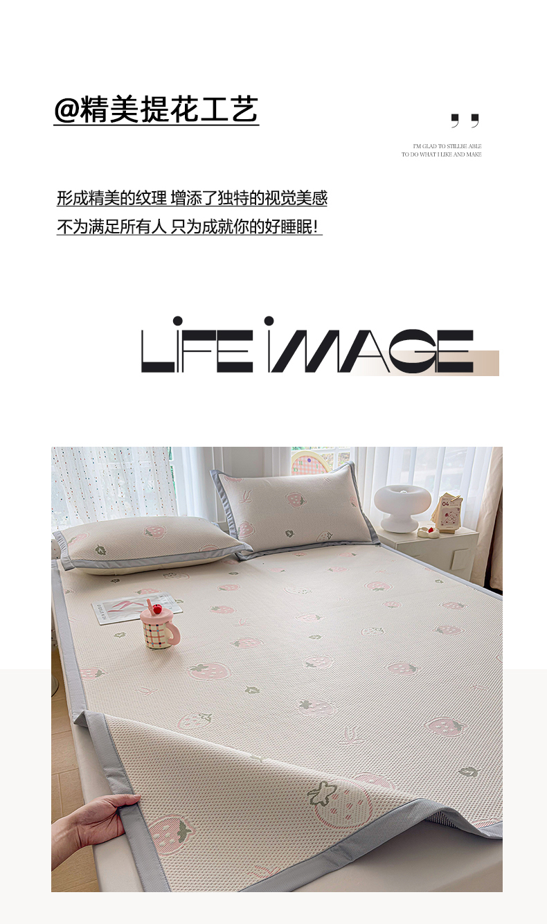 商品名称:小萌虎 2026新款乙纶PE提花冰豆豆凉席卡通床席款 草莓-粉