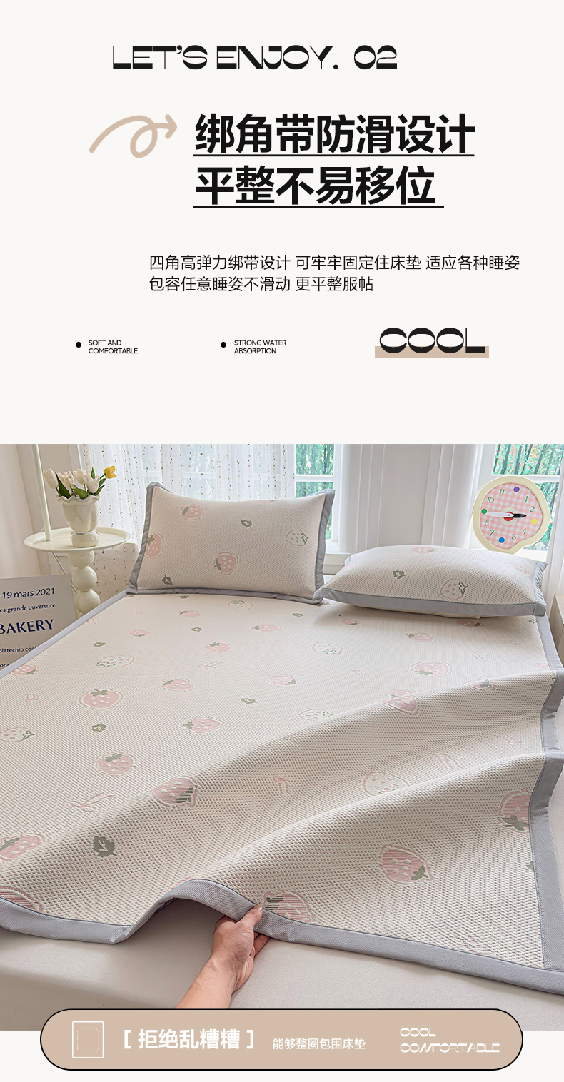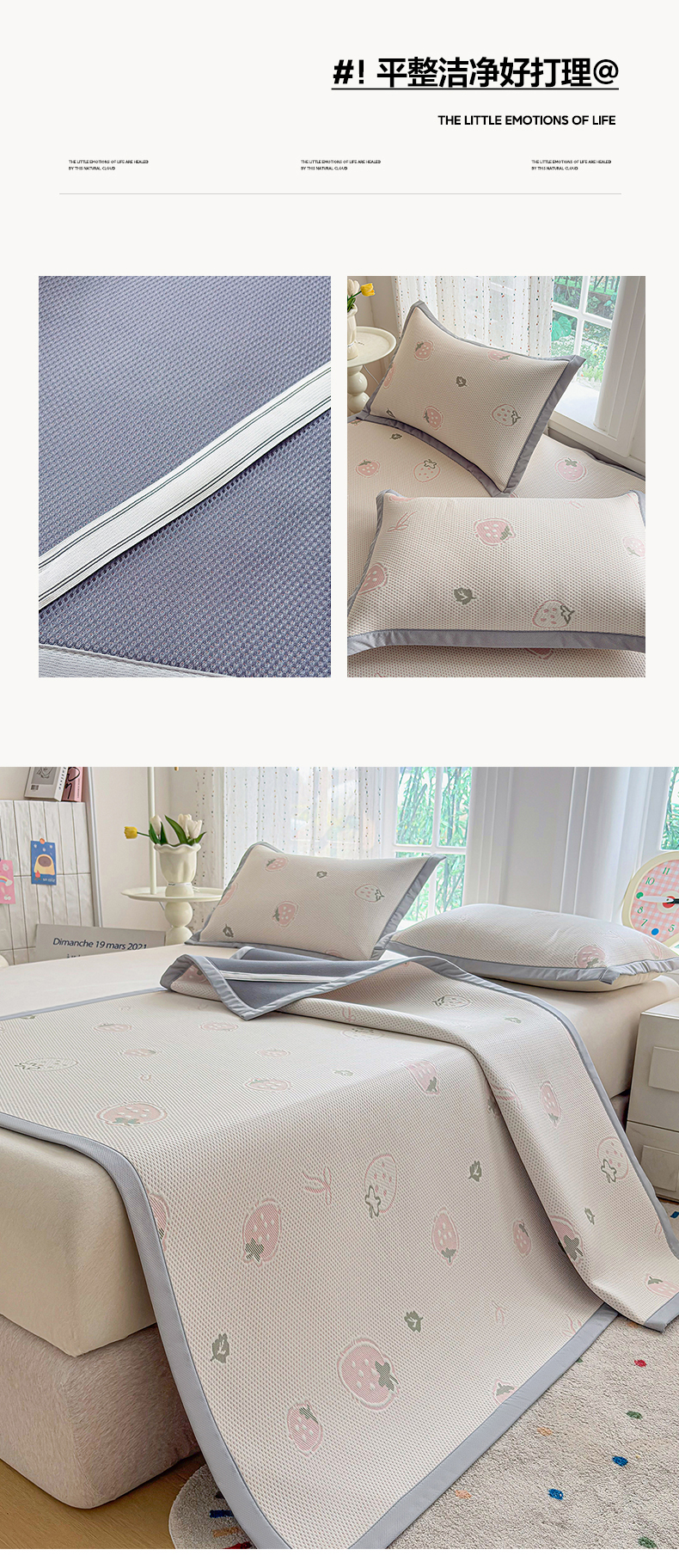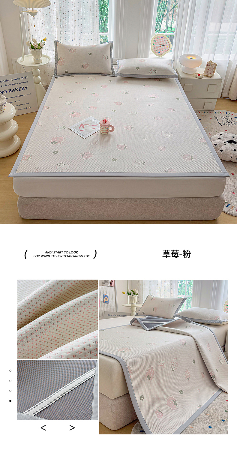 (总)小萌虎 2026年新款乙纶PE提花冰豆豆凉席床笠款卡通,草莓粉,彩虹粉,灰格,腊肠犬-咖,腊肠犬-蓝,小美熊,摇摇马-粉,摇摇马-蓝