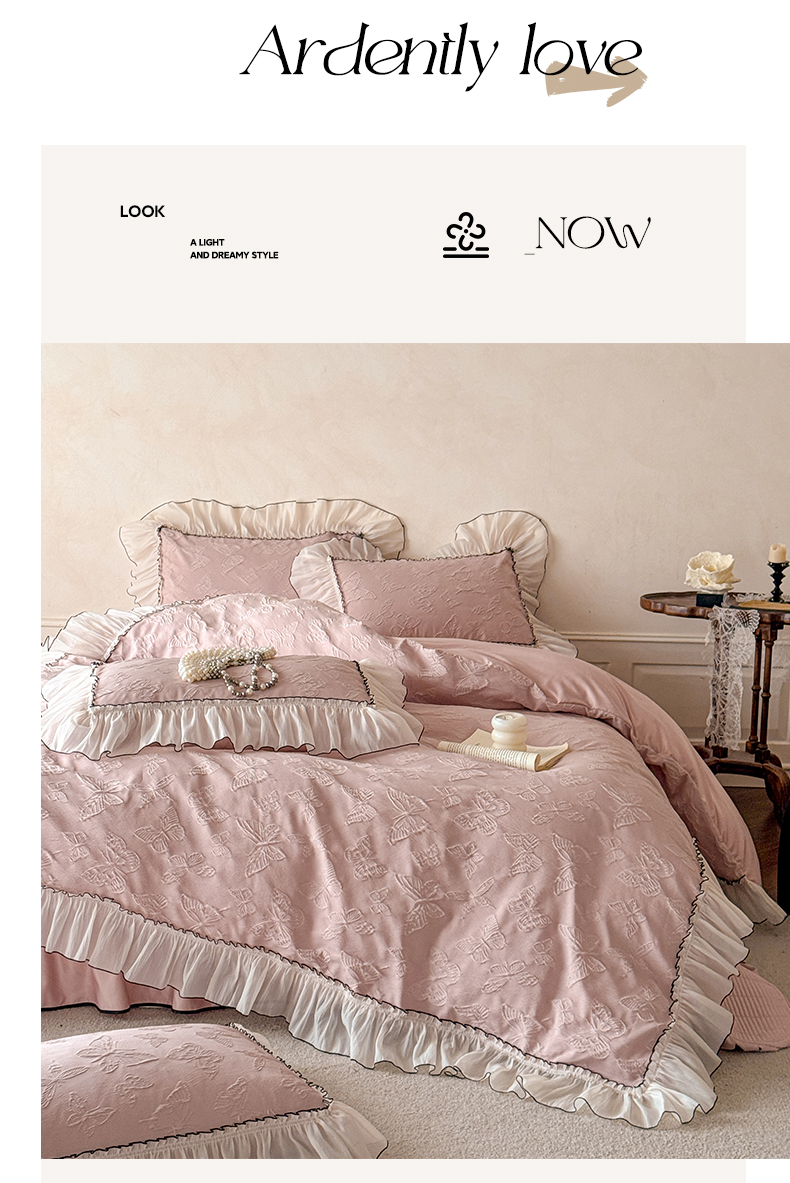 (总)迪梦姿家纺 2026新款简约纯色高密水洗棉花边床盖四件套-爱丽莎,爱丽莎-粉,爱丽莎-奶白,爱丽莎-奶黄,爱丽莎-紫,爱丽莎-绿