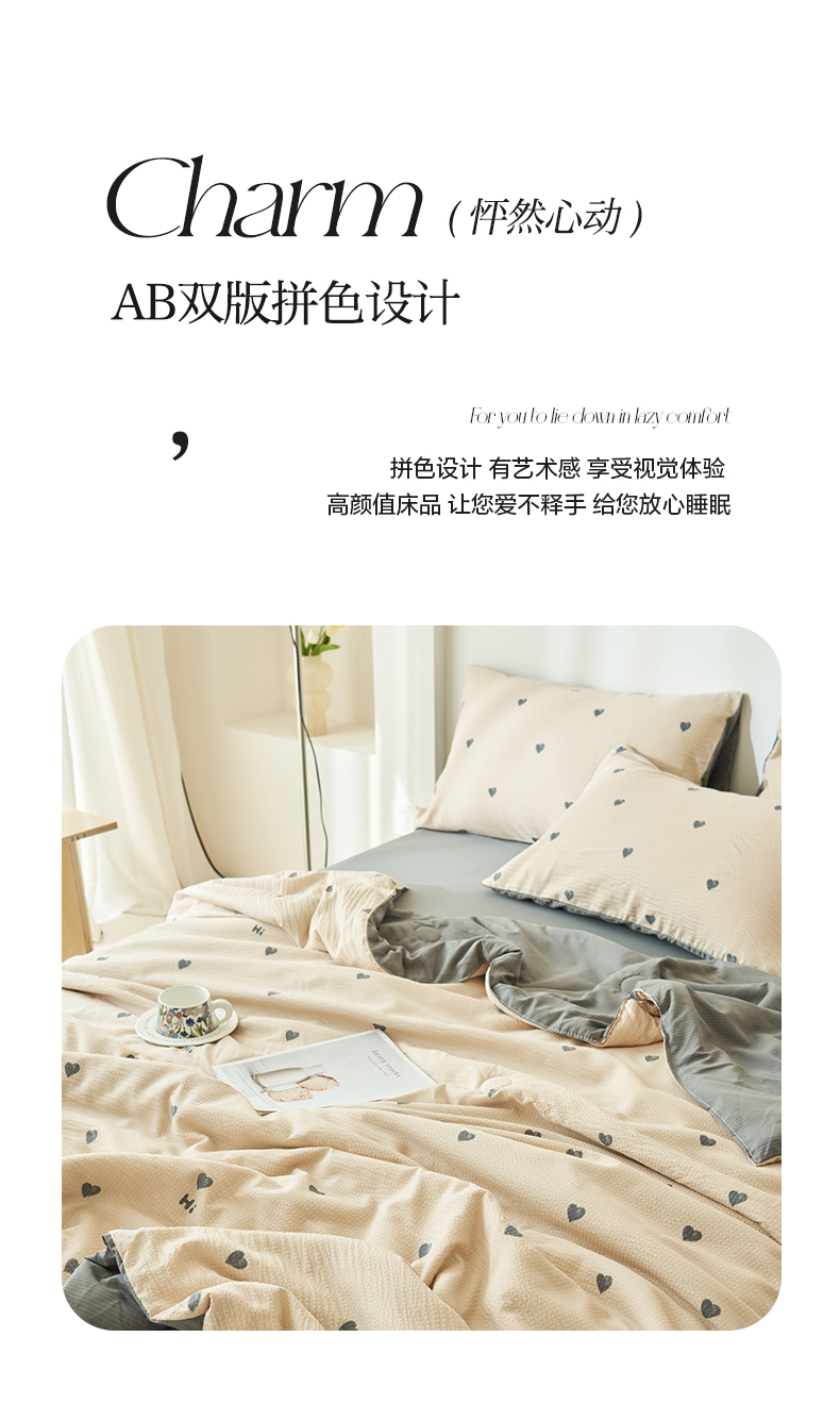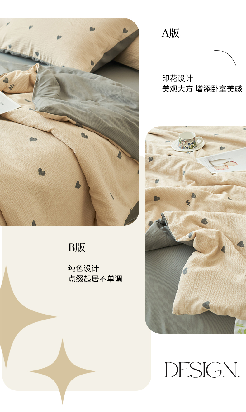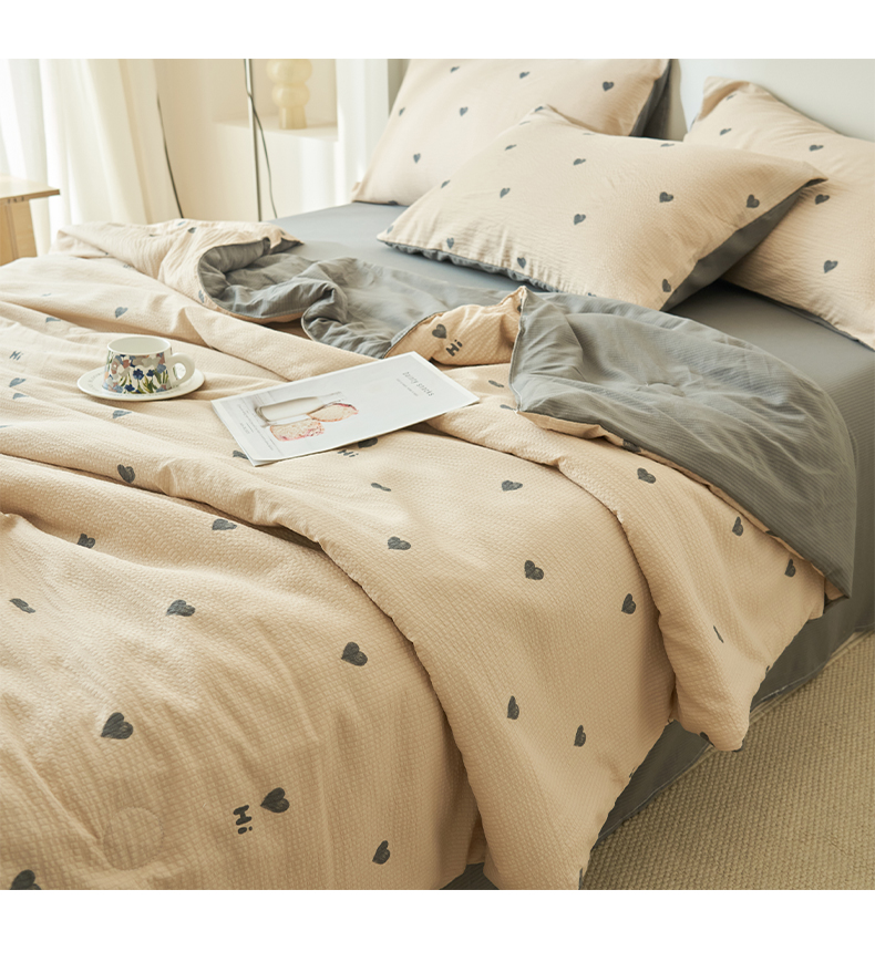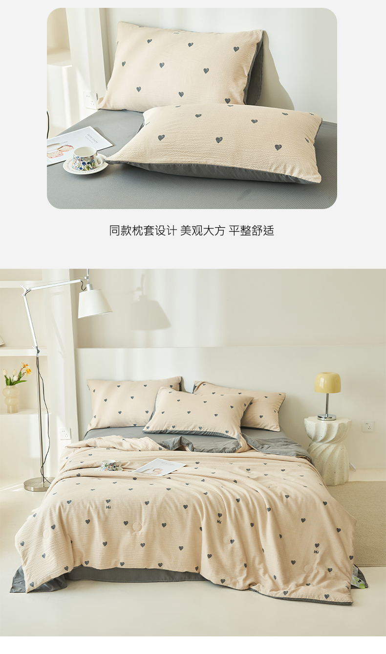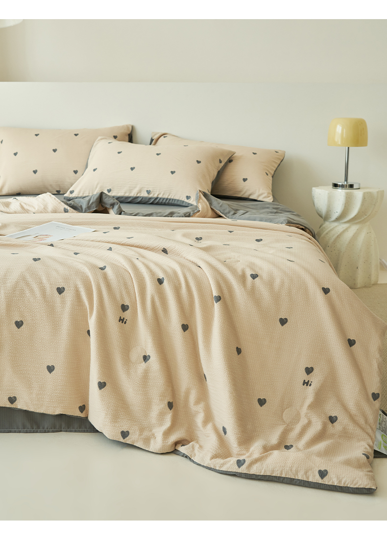 • 91家纺网 家纺一手货源 找家纺 畅销被业 2026新款A类泡芙棉印花夏被四件套 心心相印