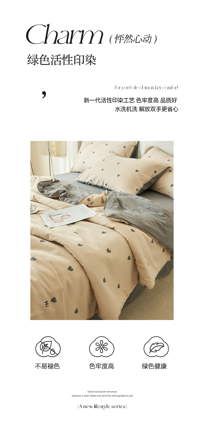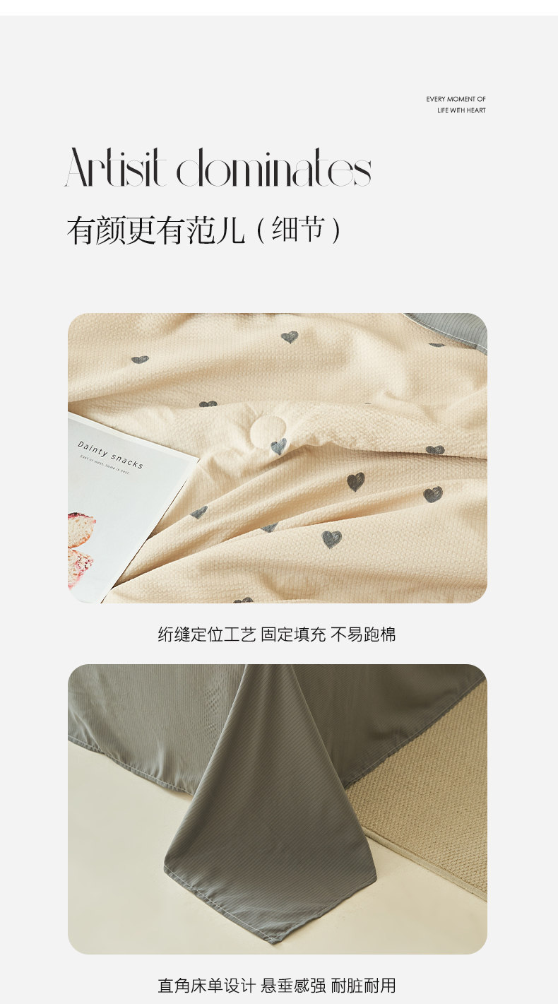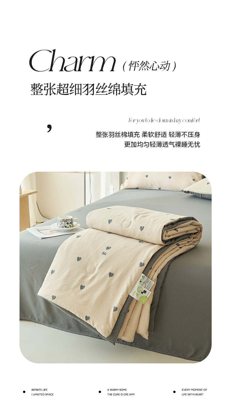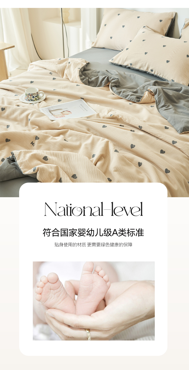 • 91家纺网 家纺一手货源 找家纺 畅销被业 2026新款A类泡芙棉印花夏被四件套 心心相印