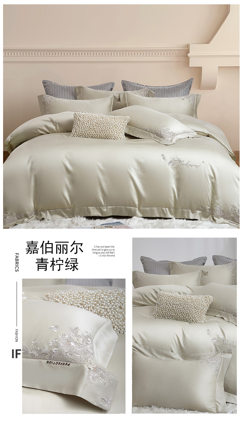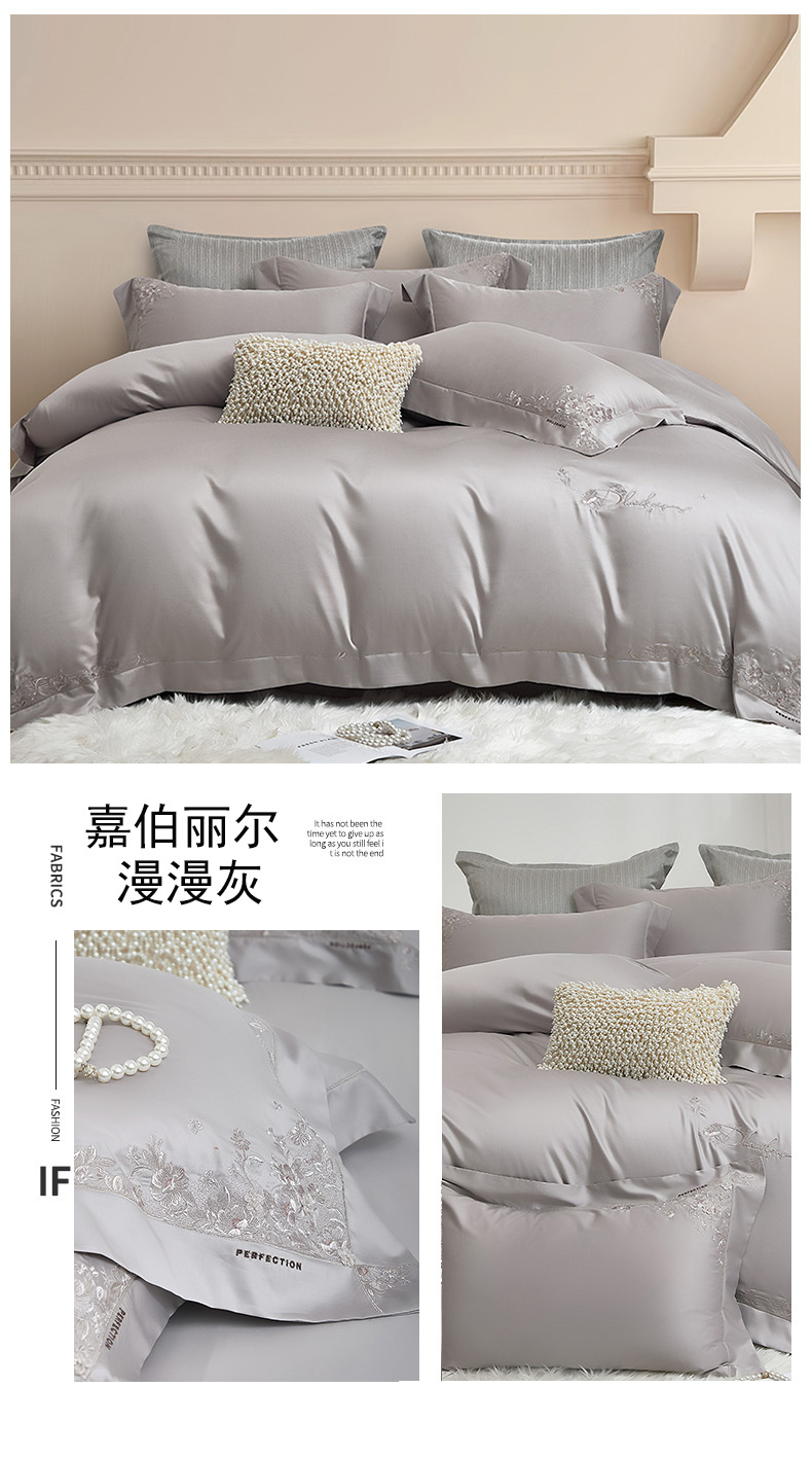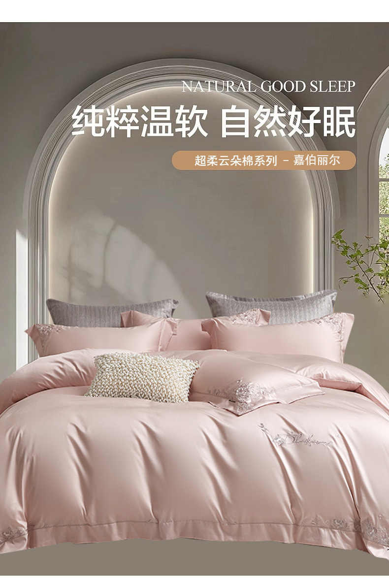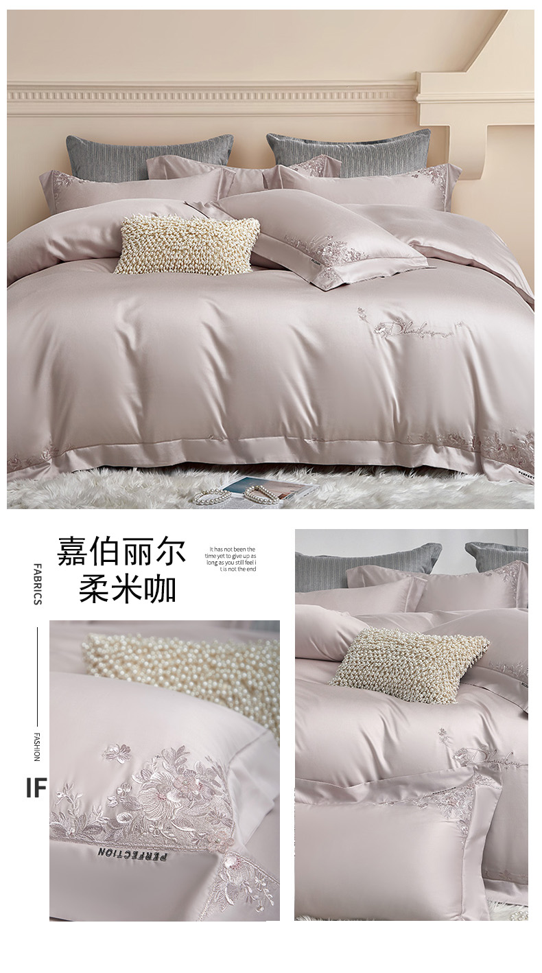 (总)诗黛尔 2026春夏新款长绒棉刺绣四件套黎境系列,黎境-香槟金,黎境-极光蓝,黎境-卡其色,黎境-落樱粉,黎境-绅士灰