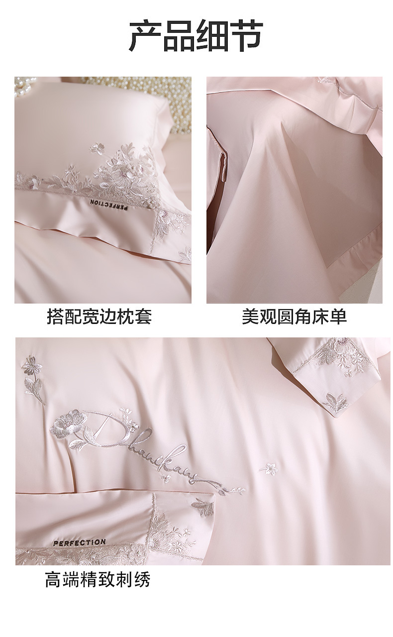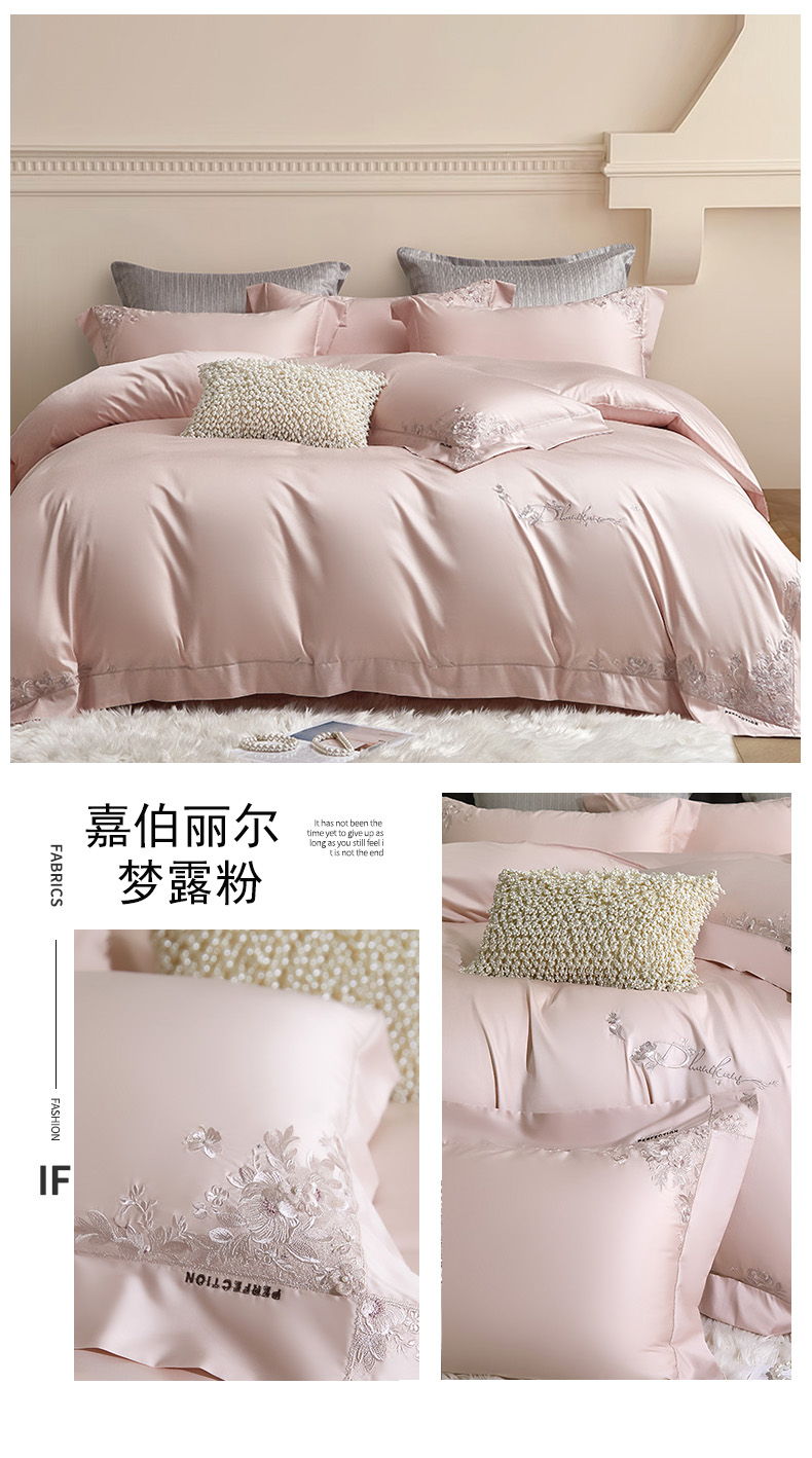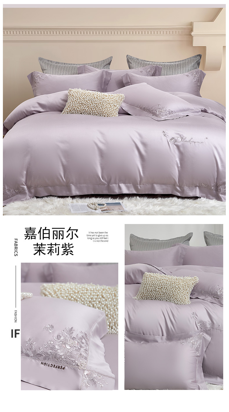 (总)诗黛尔 2026春夏新款60S长绒棉刺绣雅姿系列四件套,雅姿- 浅茶杏,雅姿-丁香紫,雅姿-豆绿,雅姿-粉豆沙,雅姿-粉玉,雅姿-红豆沙,雅姿-天蓝,雅姿-银灰
