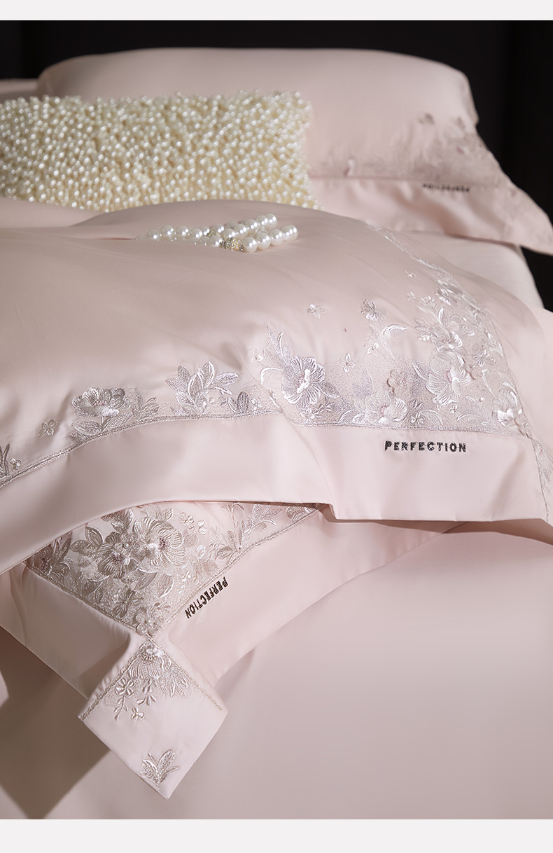(总)诗黛尔 2025秋冬新款长绒棉刺绣香缇卡系列四件套,卡其色,落樱粉,南瓜橘,绅士灰,水晶兰,油果绿