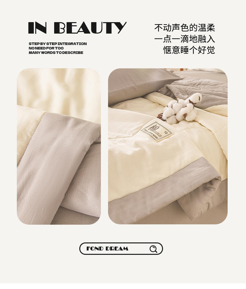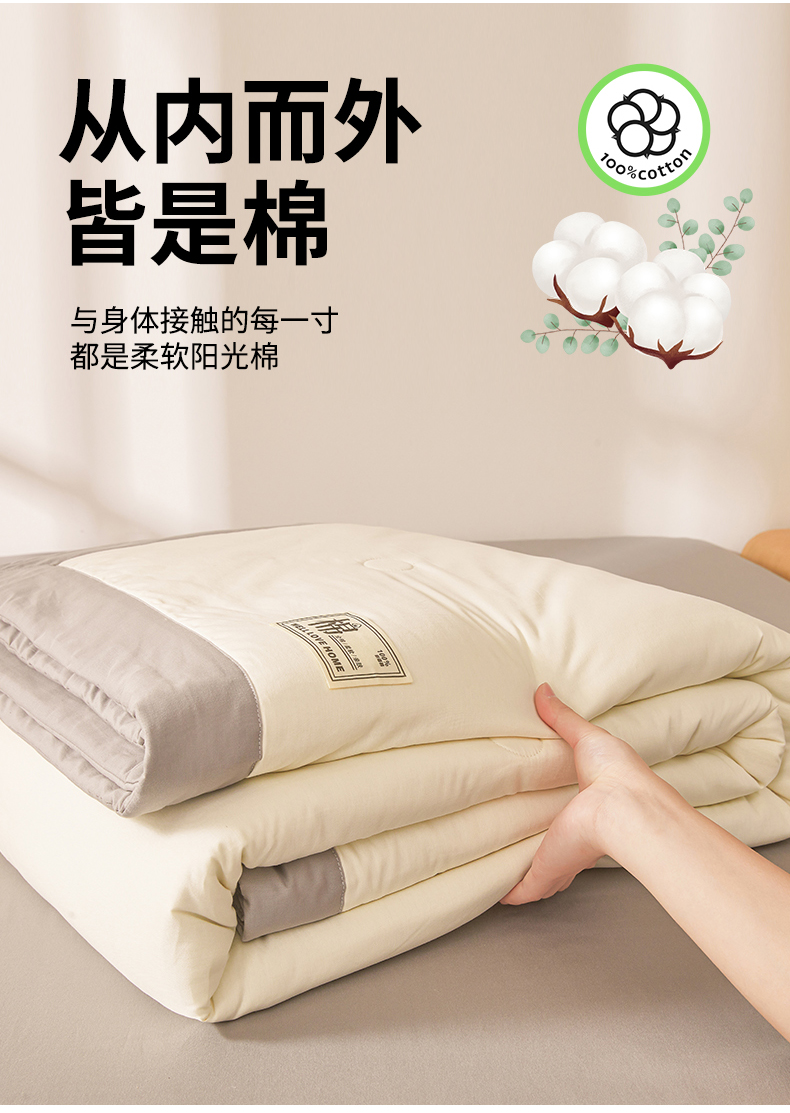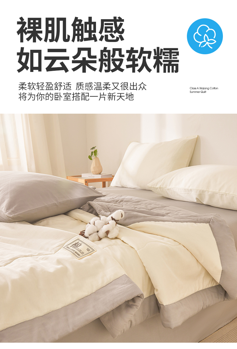 • 91家纺网 家纺一手货源 找家纺 晓时候 2026新款纯色100%里外全棉新疆棉花被纯棉夏凉被空调被夏被四件套被子被芯 里外全棉-月光白拼灰