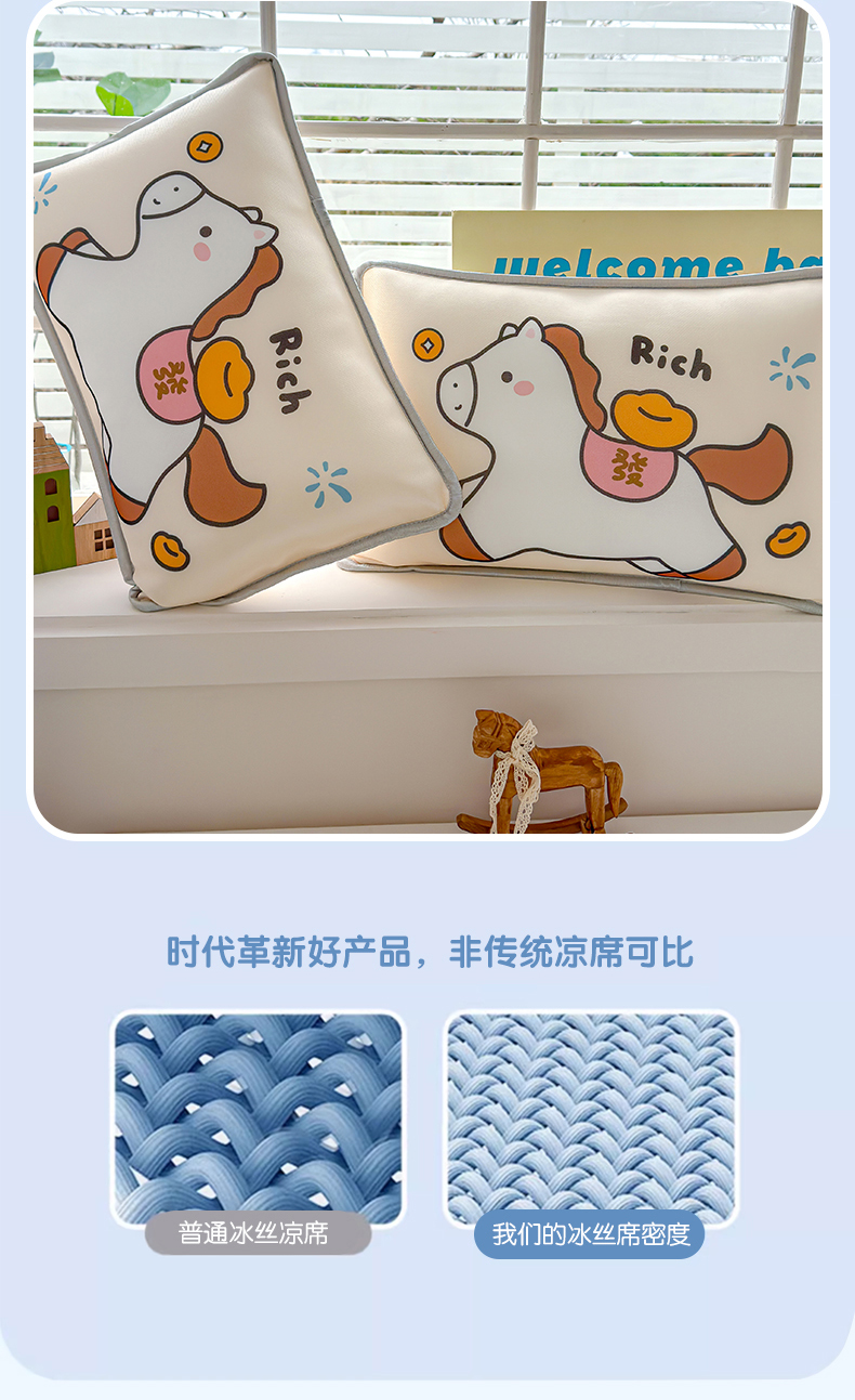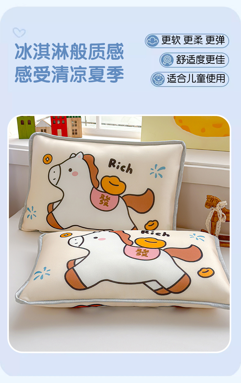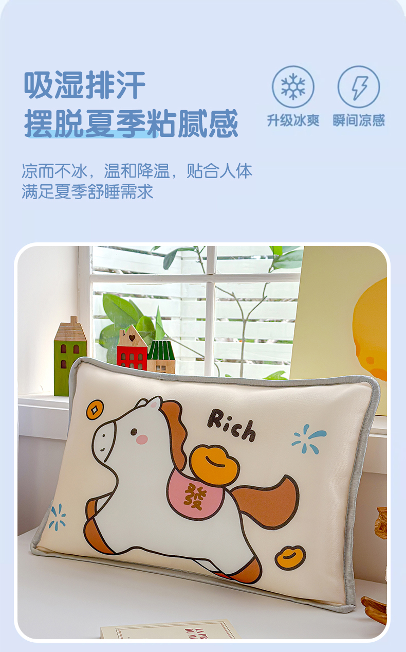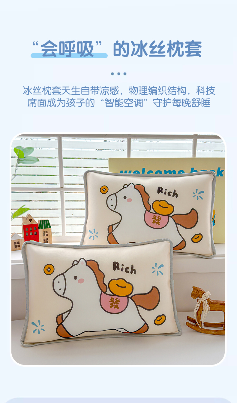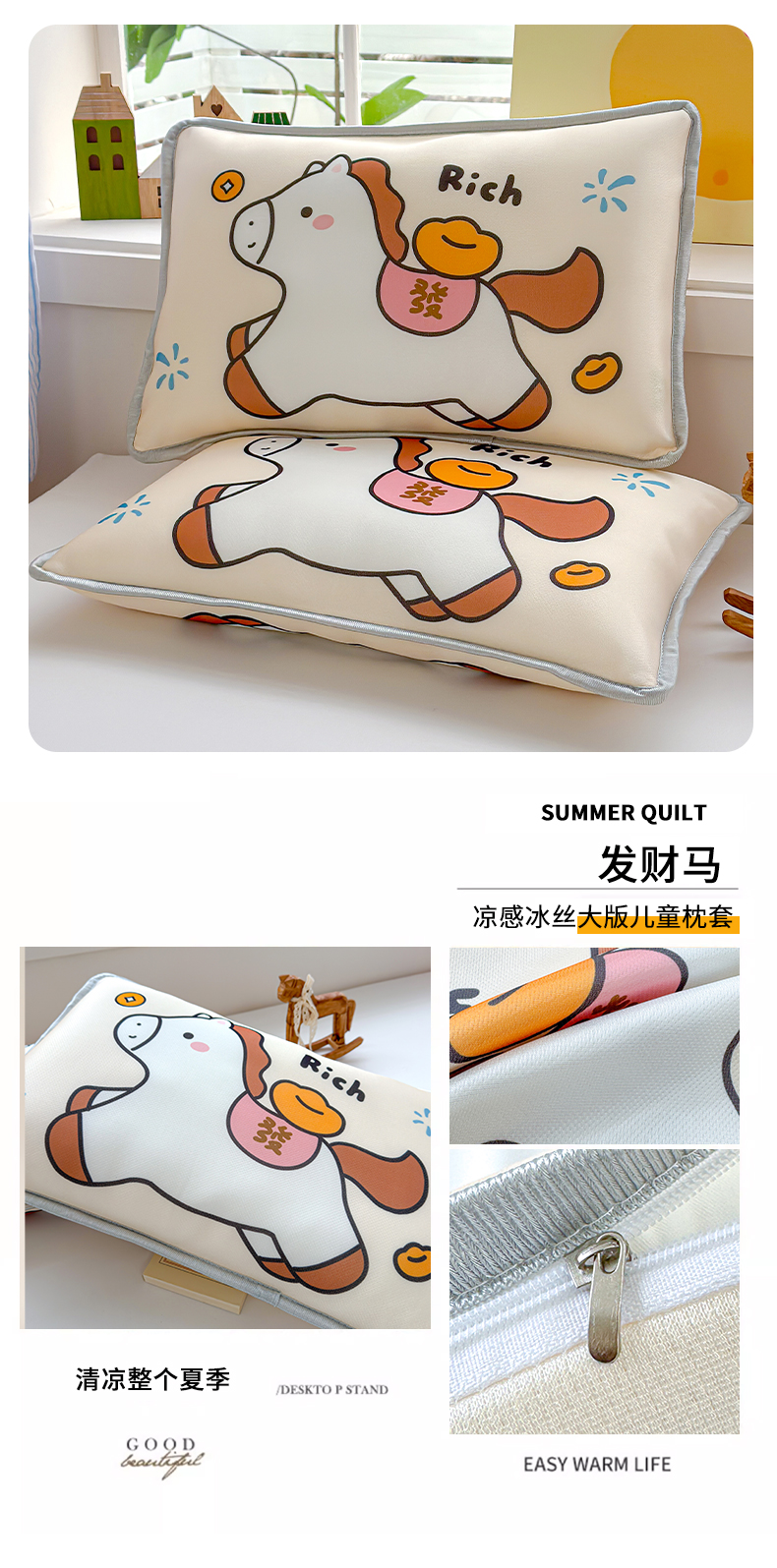 丽美人家纺 2026新款柔软亲肤儿童冰丝枕套 发财马