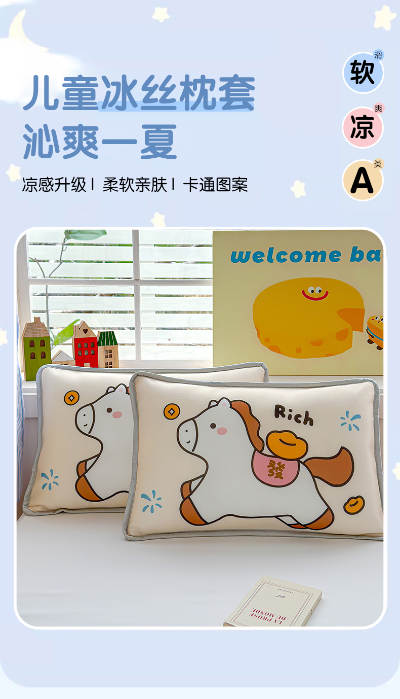• 91家纺网 家纺一手货源 找家纺 丽美人家纺 2026新款柔软亲肤儿童冰丝枕套 发财马