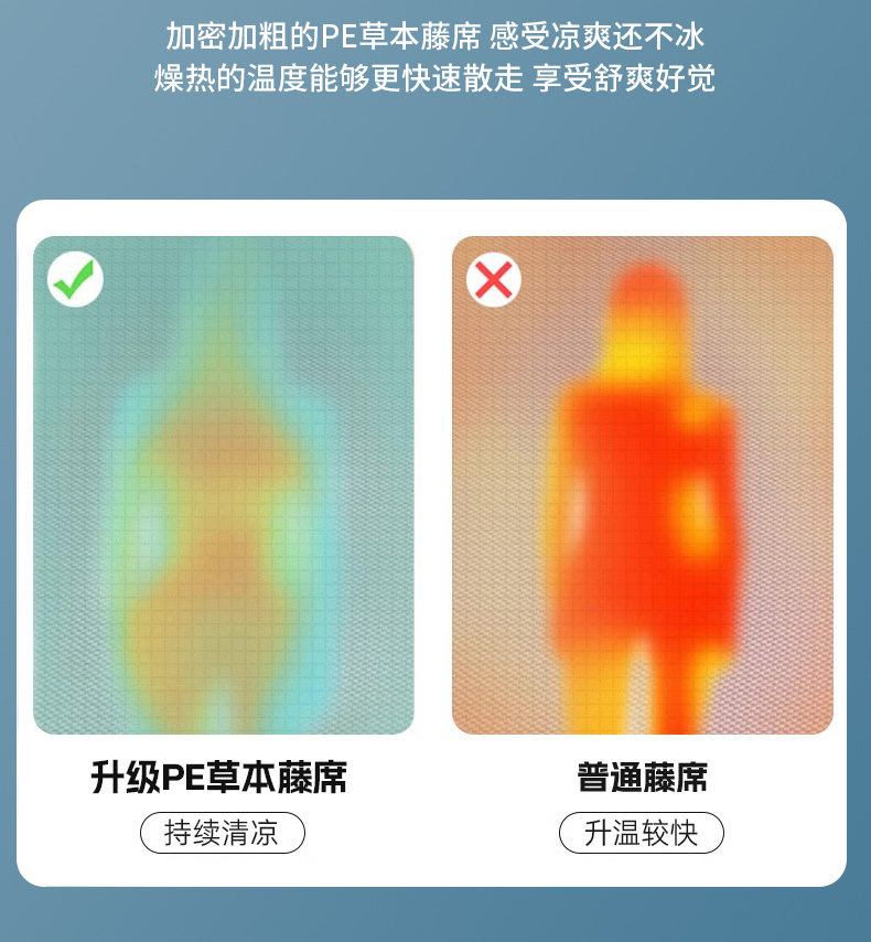 鑫琪莱家纺 2026新款PE草本凉感藤席子凉席 艾草蓝-床席款