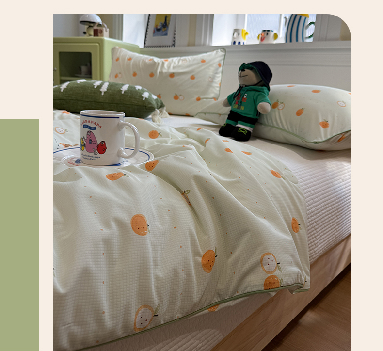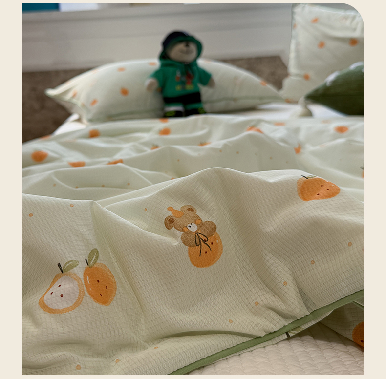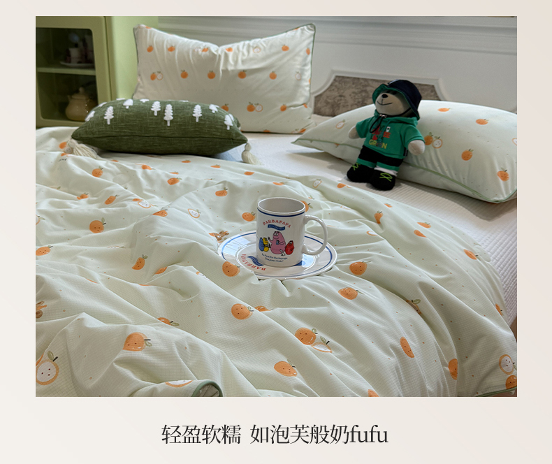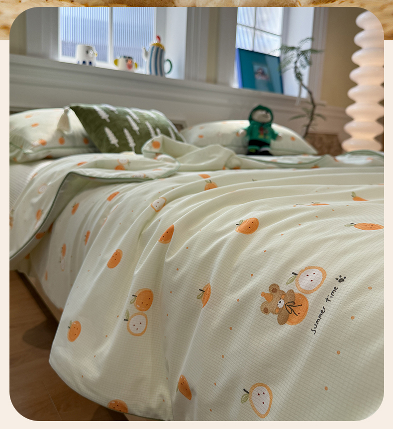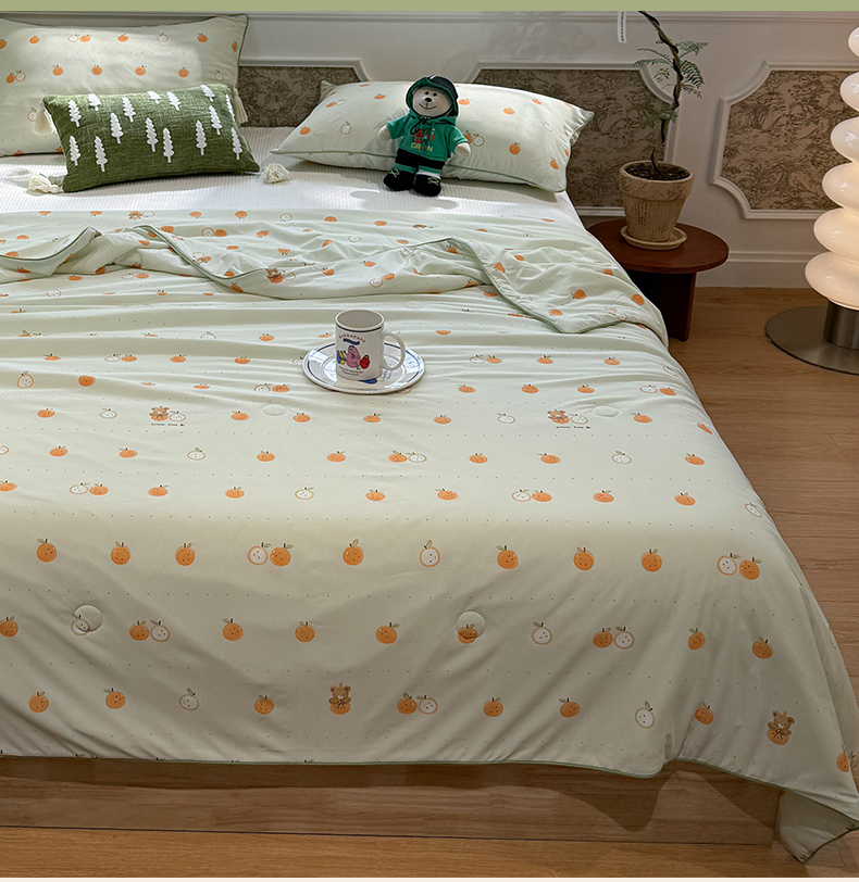被子 > 夏被 > 羚羊语家纺 2026新款凉感丝提花夏凉被(含氨)印花冰淇淋空调被针织棉被夏被冰丝云母凉感西瓜被子被芯 甜橘梦语