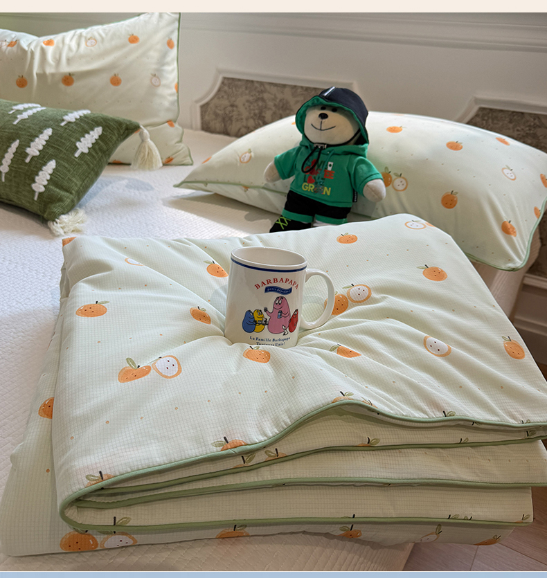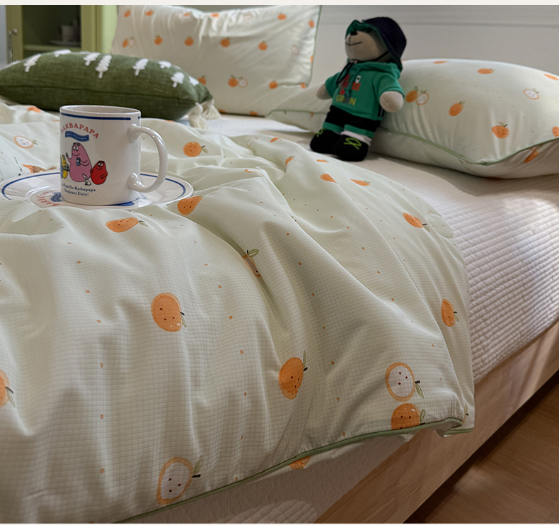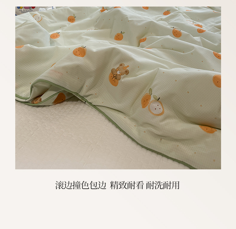 商品名称:羚羊语家纺 2026新款凉感丝提花夏凉被(含氨)印花冰淇淋空调被针织棉被夏被冰丝云母凉感西瓜被子被芯 甜橘梦语