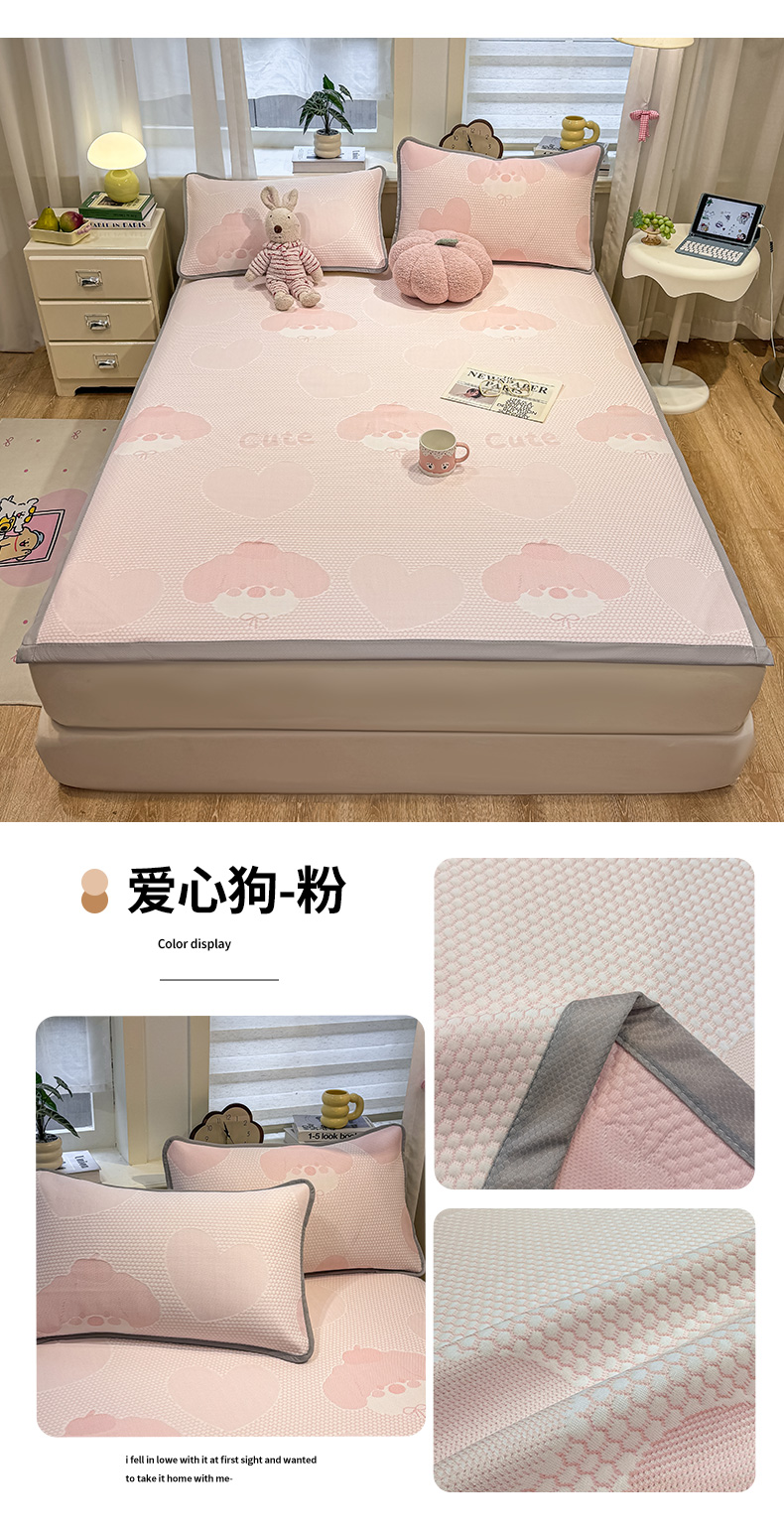 • 91家纺网 家纺一手货源 找家纺 (总)眠势力 2026新款冰豆豆凉席三件套夏季冷感可机洗冰丝席软席子条席款,爱心狗-兰,爱心狗-灰,爱心狗-粉,爱心狗-绿,大牌熊-粉,大牌熊-灰,大牌熊-兰,大牌熊-绿,云朵-粉,云朵-灰,云朵-兰,云朵-绿