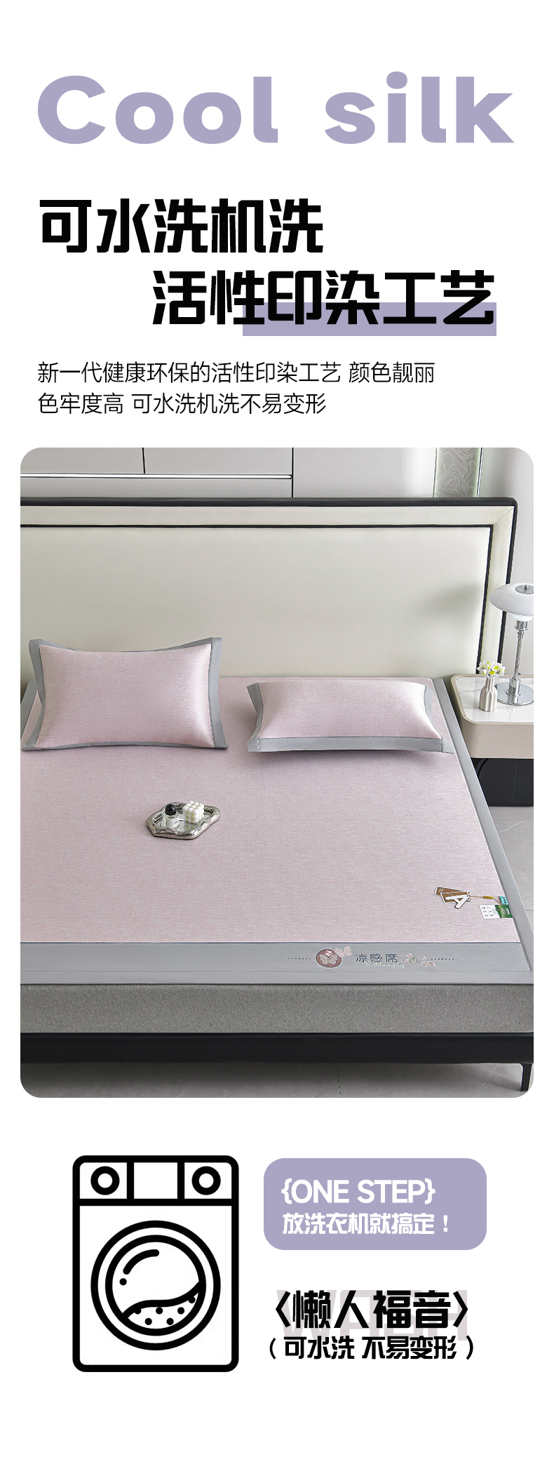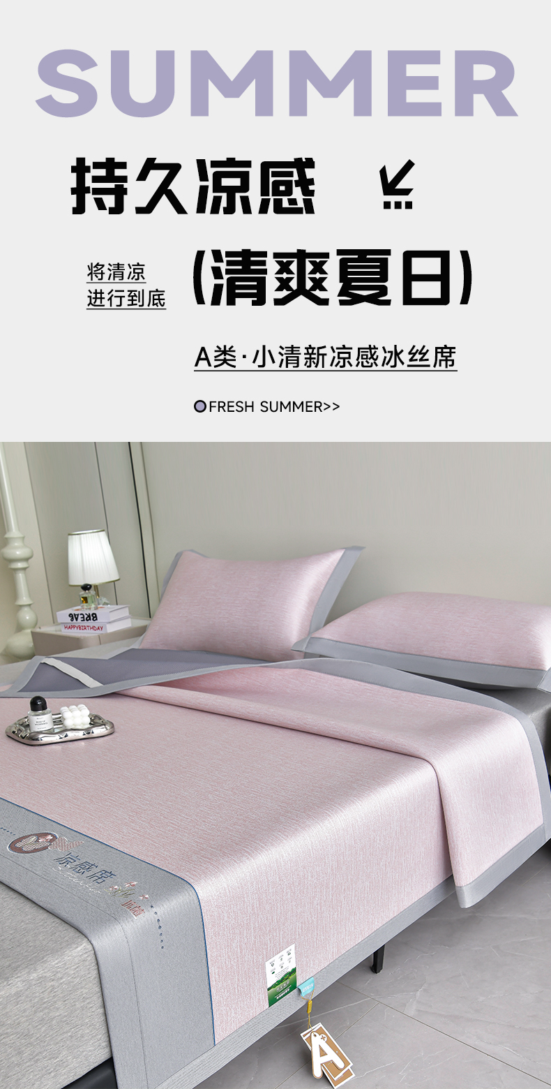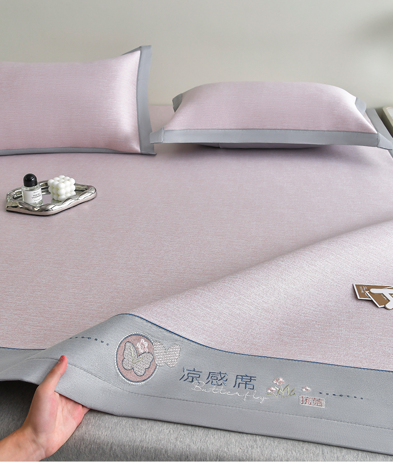 (总)小牛席业 2026新款小清新凉感冰丝席席子凉席,粉色,灰色,蓝色,香槟