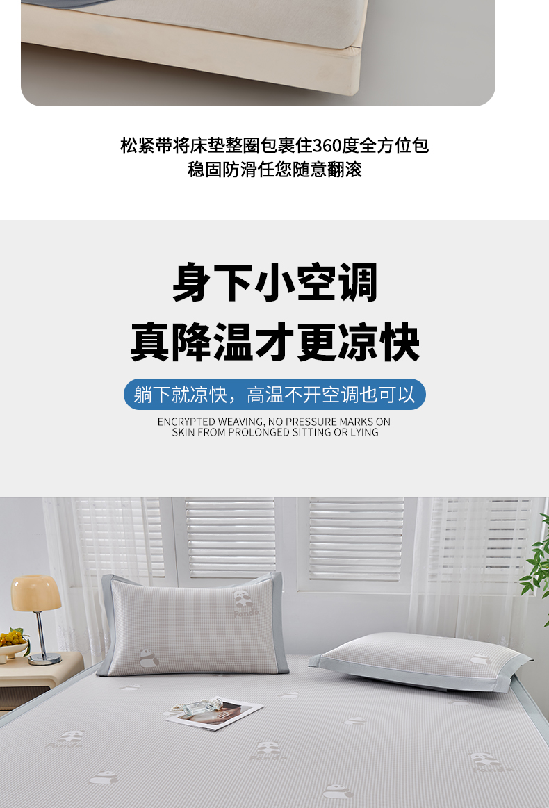 (总)小牛席业 2026新款熊猫格纹提花冰丝席席子凉席-(床笠款)凉席藤席冰藤席冰丝席凉感空调席,粉色,灰色,蓝色,抹茶,香槟