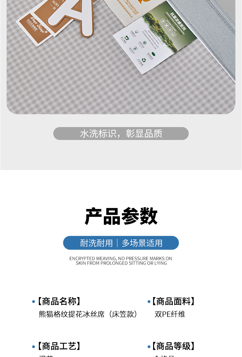 商品名称:小牛席业 2026新款熊猫格纹提花冰丝席席子凉席-床笠款 灰色