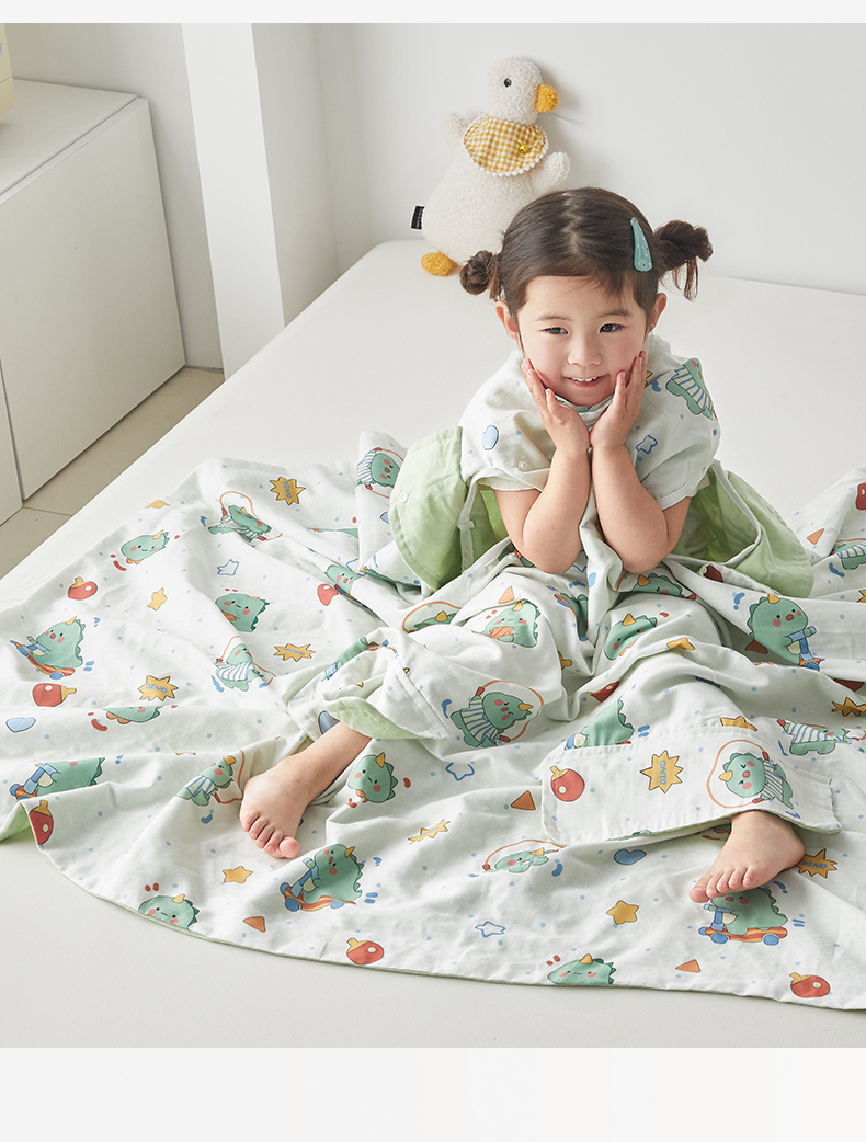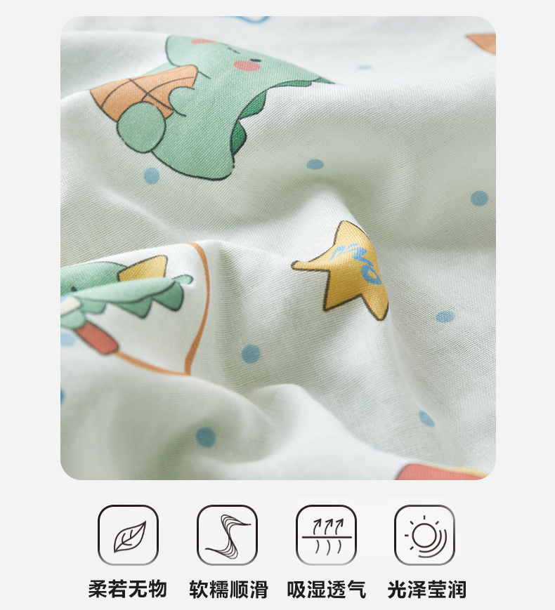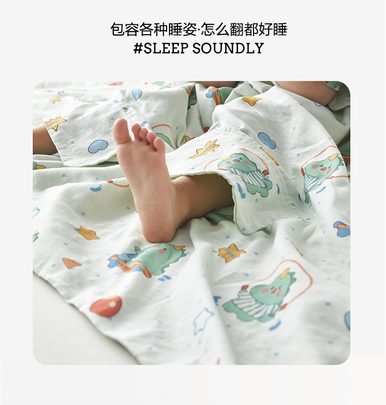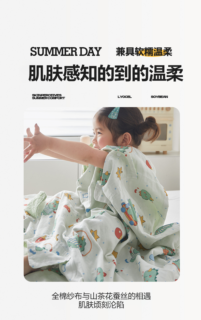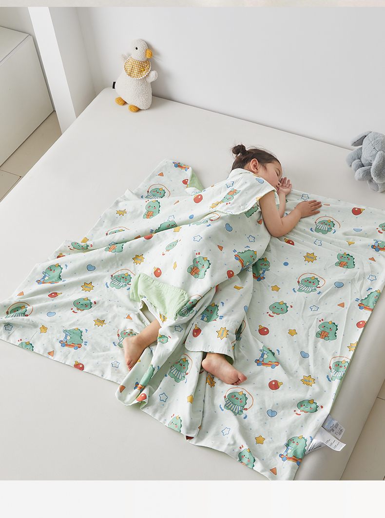 • 91家纺网 家纺一手货源 找家纺 荷马之梦 2026新款全棉纱布印花小版盖毯山茶蚕丝儿童拥抱防踢夏被-拥抱森林 运动恐龙
