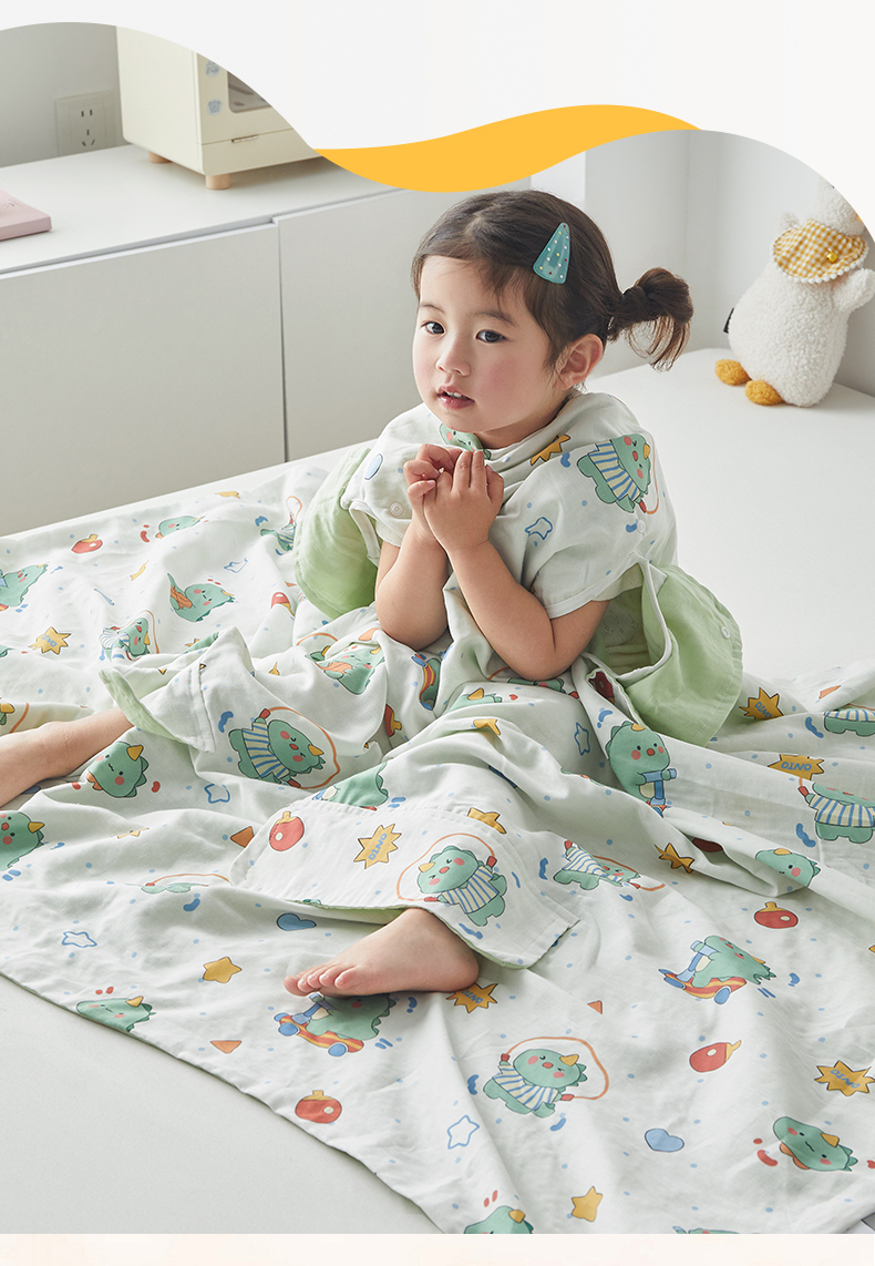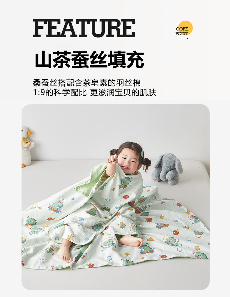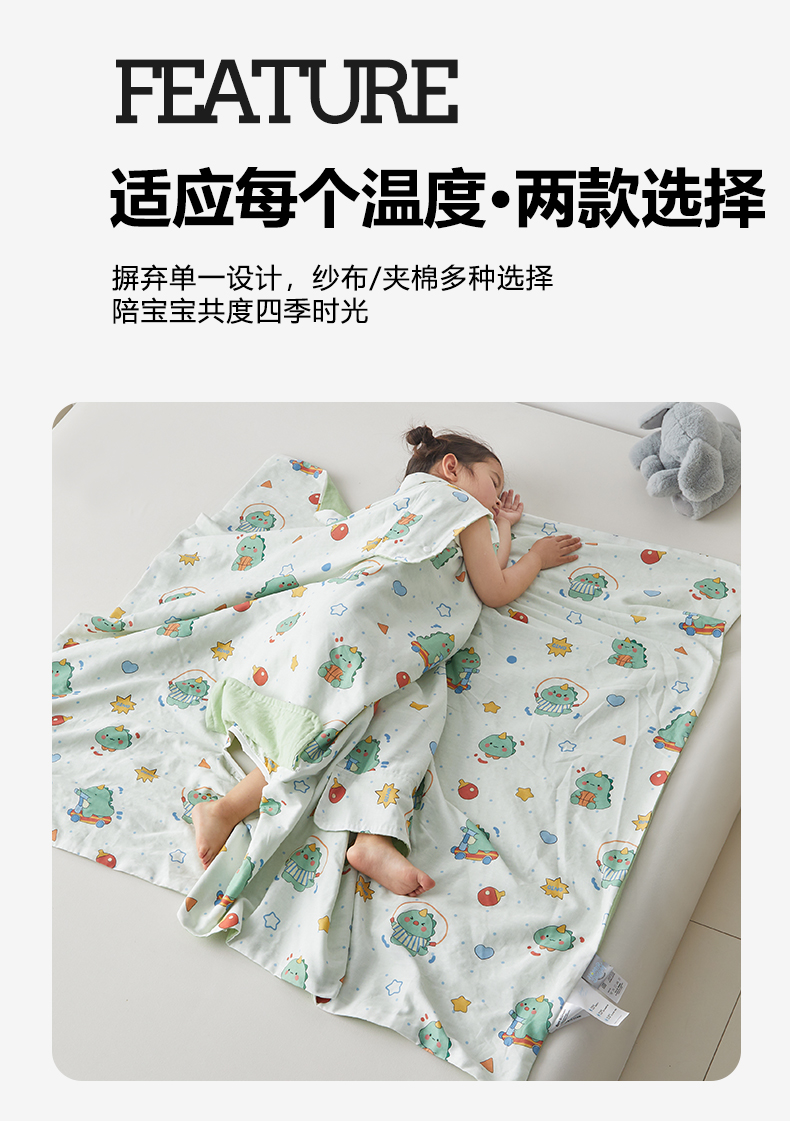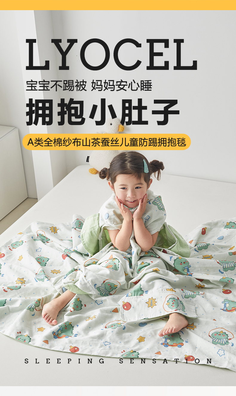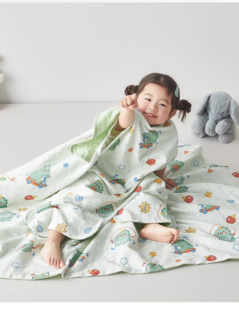 • 91家纺网 家纺一手货源 找家纺 荷马之梦 2026新款全棉纱布印花小版盖毯山茶蚕丝儿童拥抱防踢夏被-拥抱森林 运动恐龙