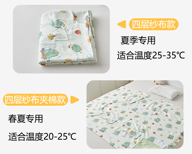 • 91家纺网 家纺一手货源 找家纺 (总)荷马之梦 2026新款全棉纯棉双层纱印花贴布绣卡通山茶蚕丝儿童夏被-轻芯系列,组合图 仅供参考,花花小兔,趣味小象,阳光小狮