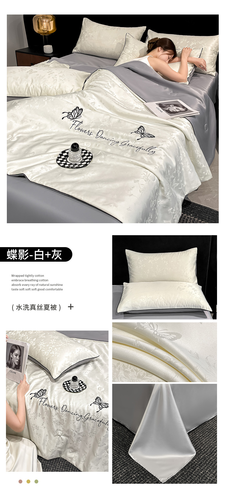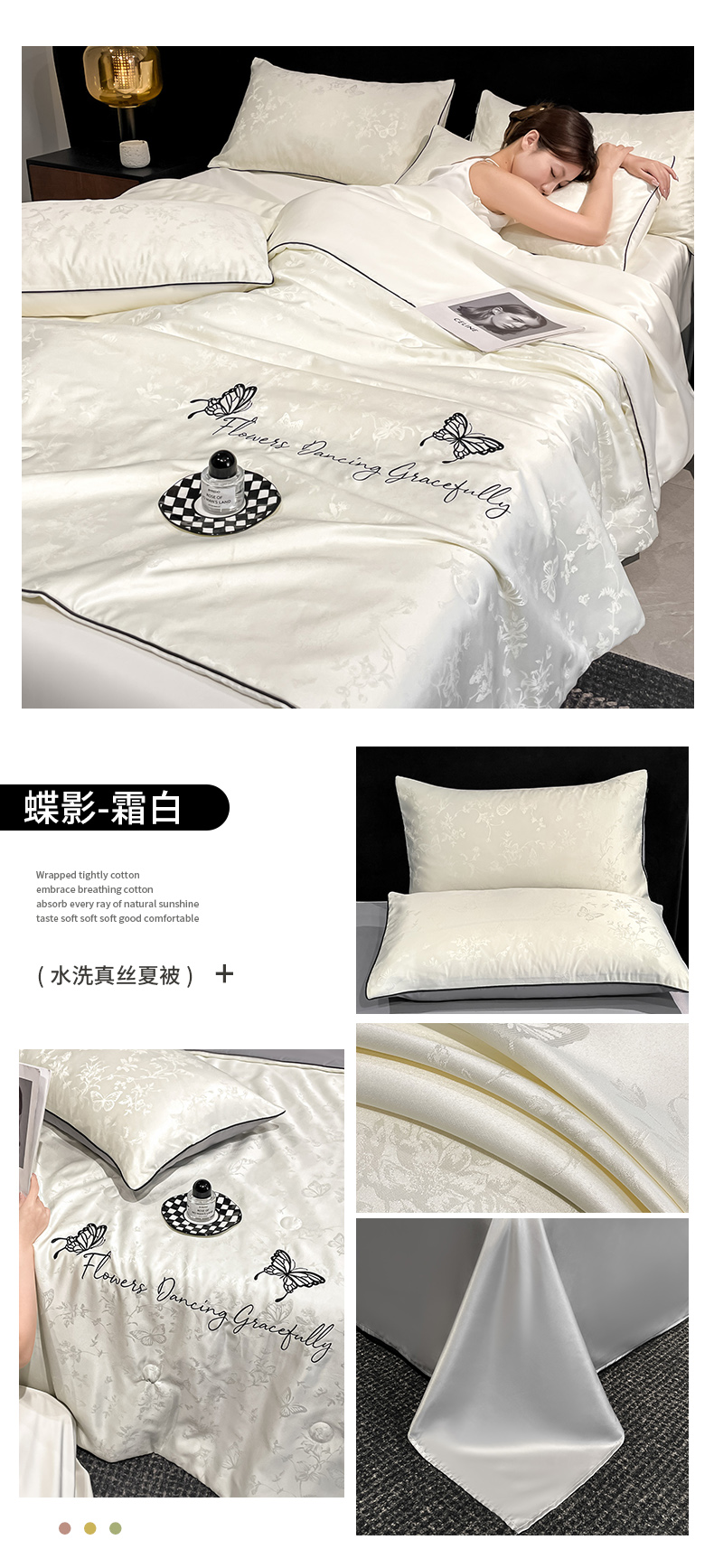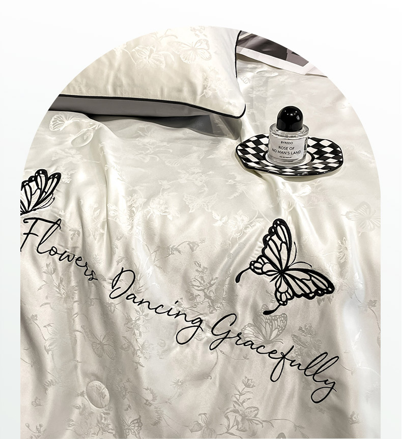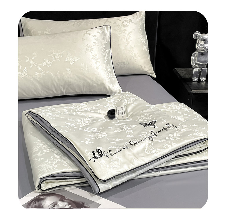 商品名称:慕澄家纺 2026新款水洗真丝天丝提花刺绣夏凉被空调被夏被四件套-蝶影 蝶影-白+灰