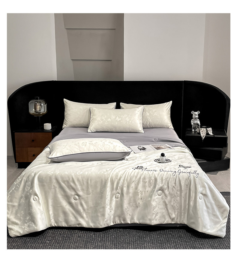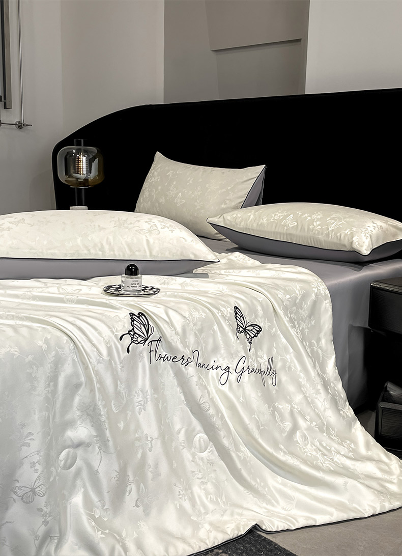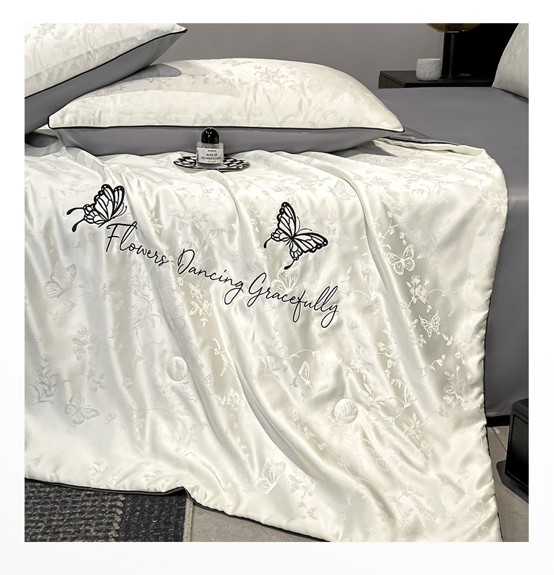 慕澄家纺 2026新款水洗真丝天丝提花刺绣夏凉被空调被夏被四件套-蝶影 蝶影-白+灰