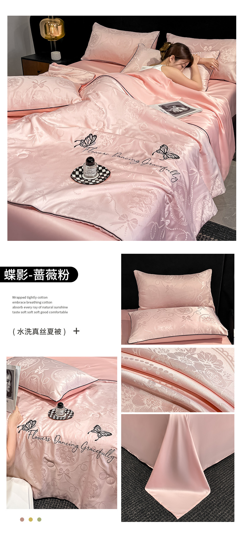 (总)慕澄家纺 2026新款水洗真丝天丝提花刺绣夏凉被空调被夏被四件套-蝶影,蝶影-白+灰,蝶影-冰蓝,蝶影-蔷薇粉,蝶影-霜白,蝶影-香槟金,蝶影-烟青灰