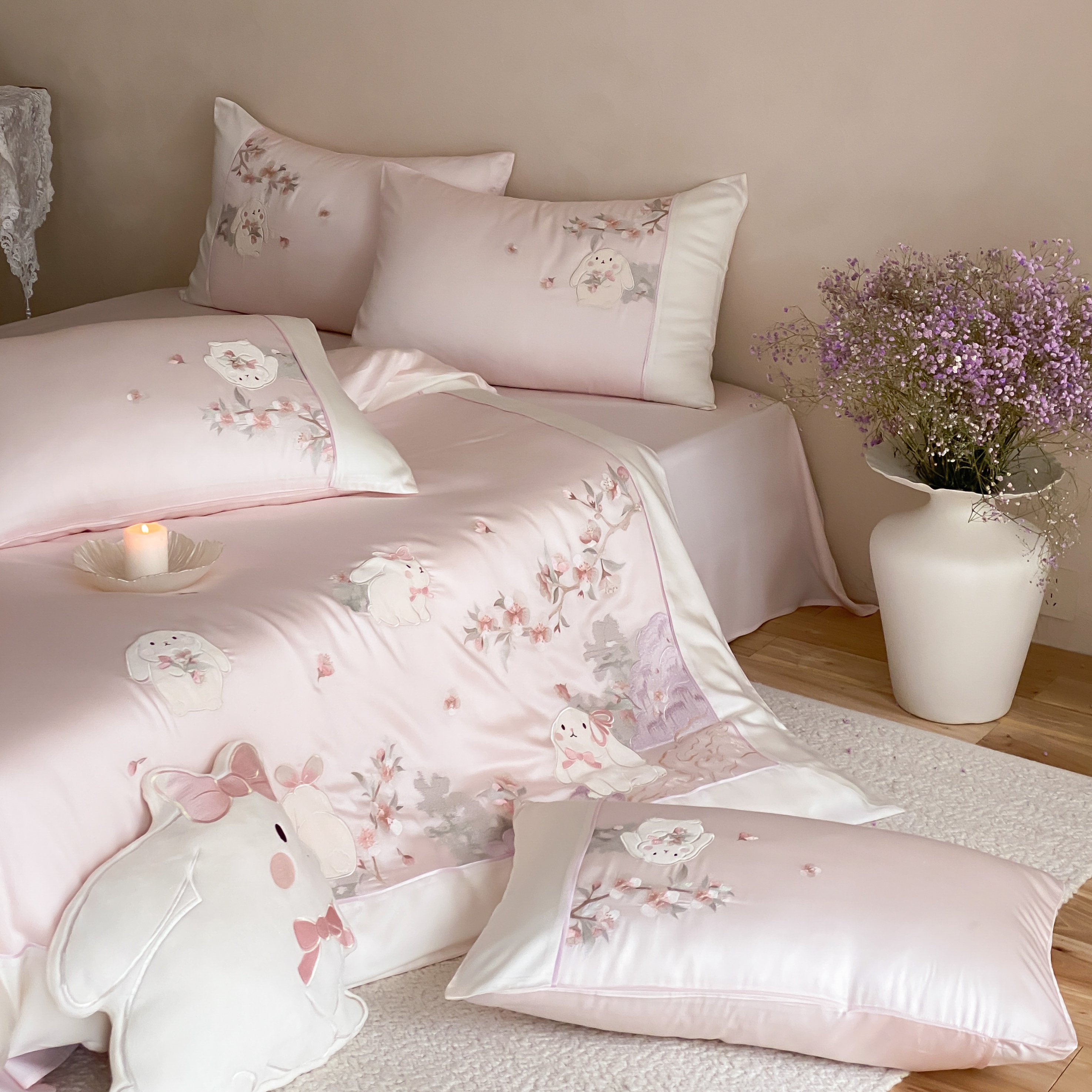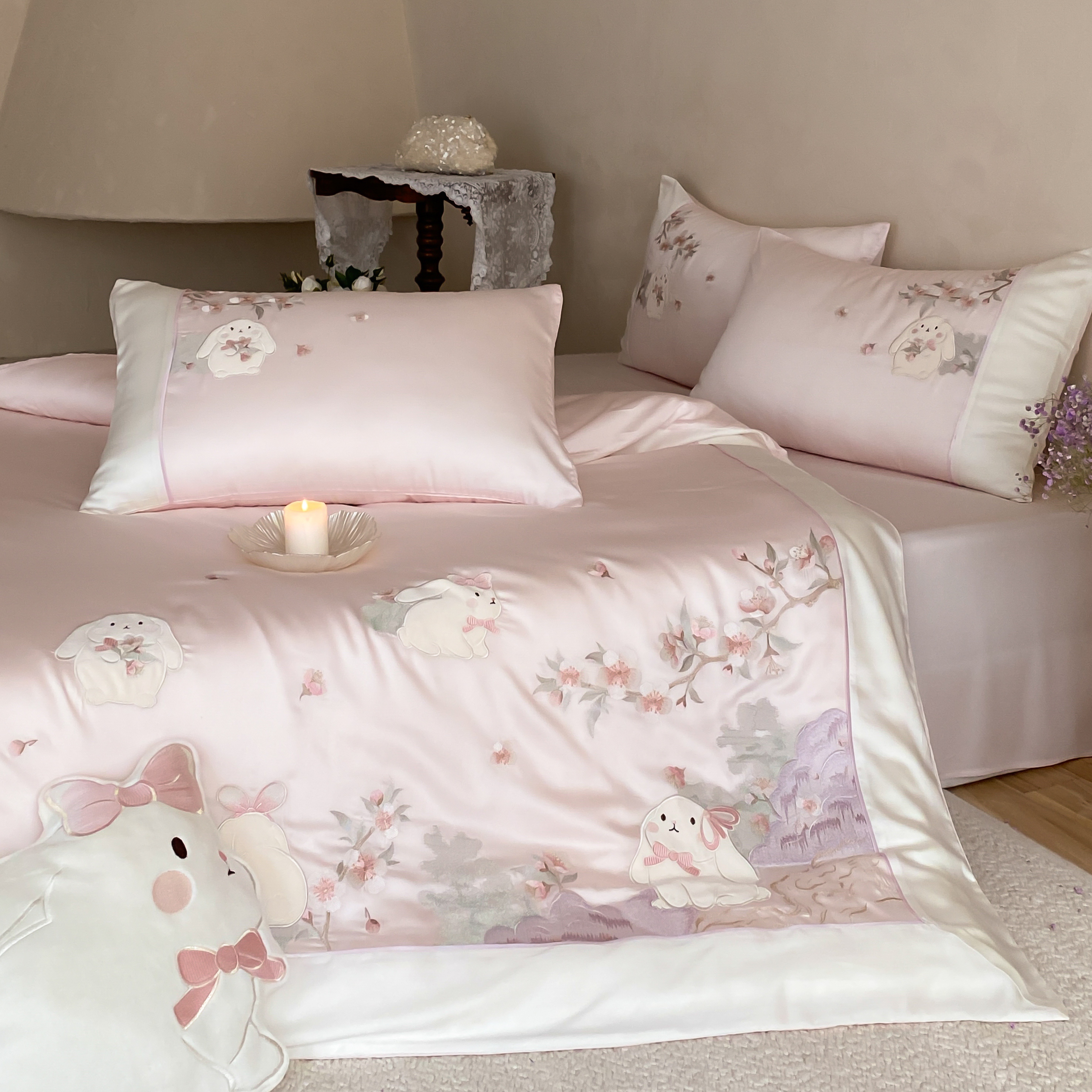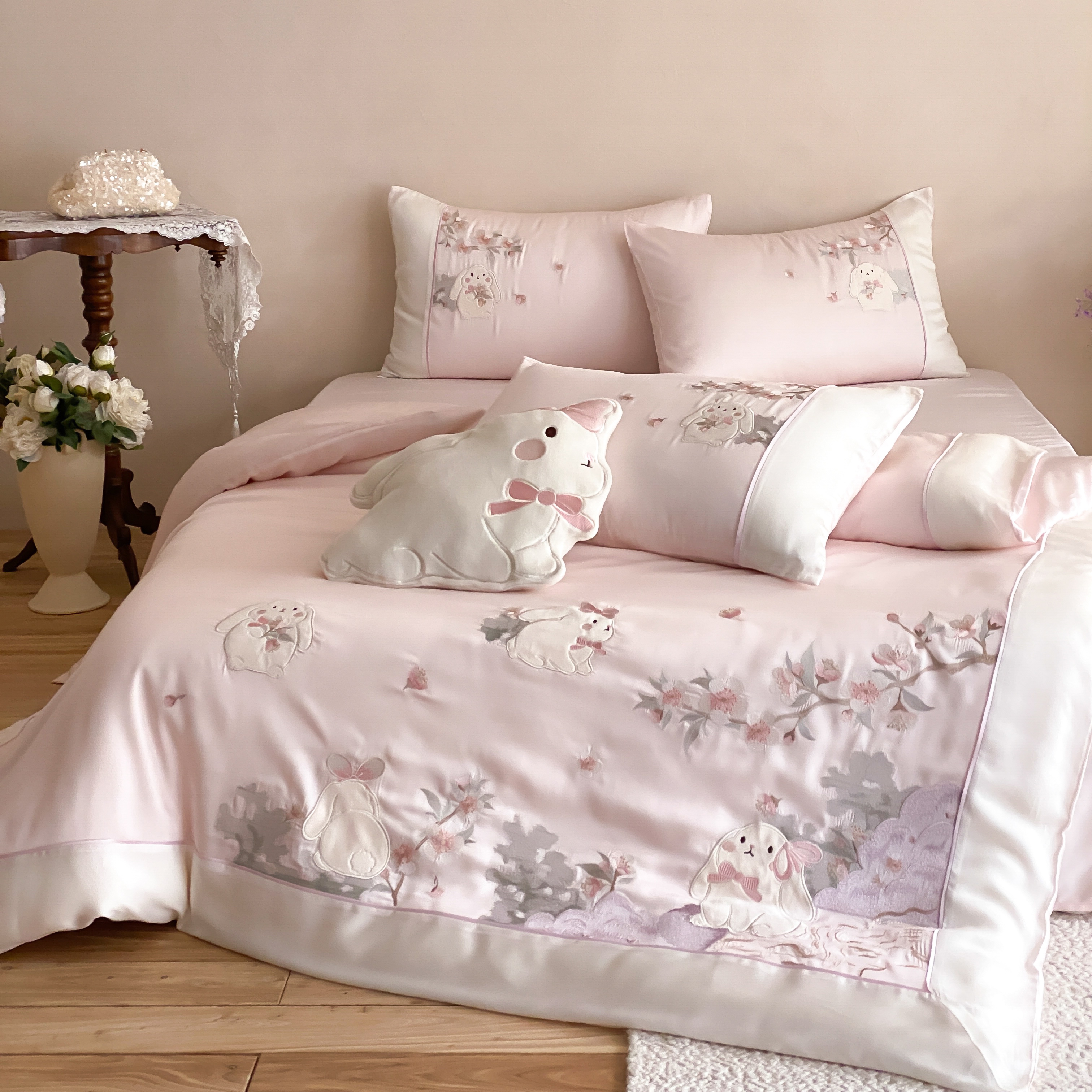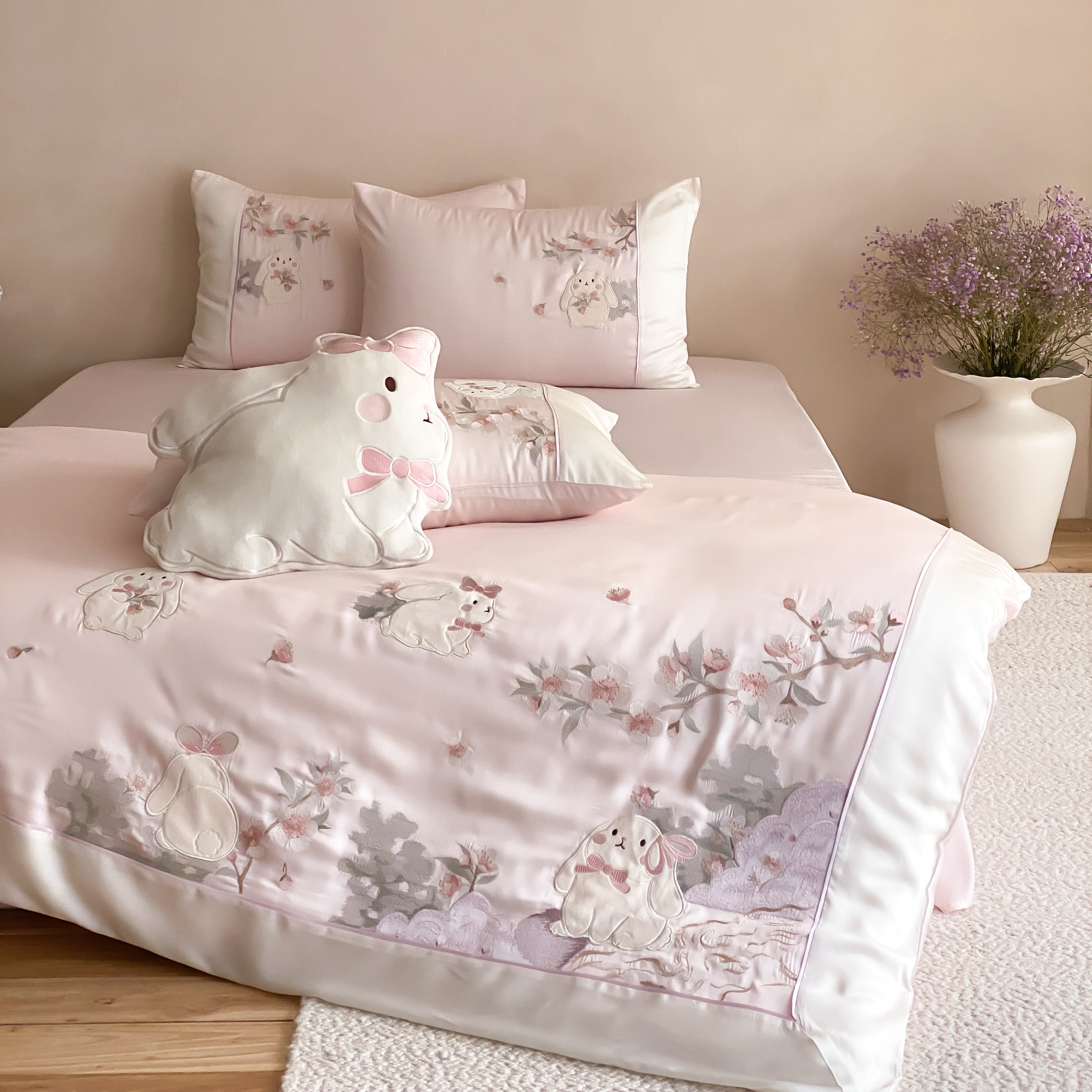 当前位置: 91家纺网 > 商品网购 > 床品套件 > 四件套 > 莱赛尔四件套 > (总)莎臣豹 2026新款莱赛尔天丝贴布绣四件套樱花树下