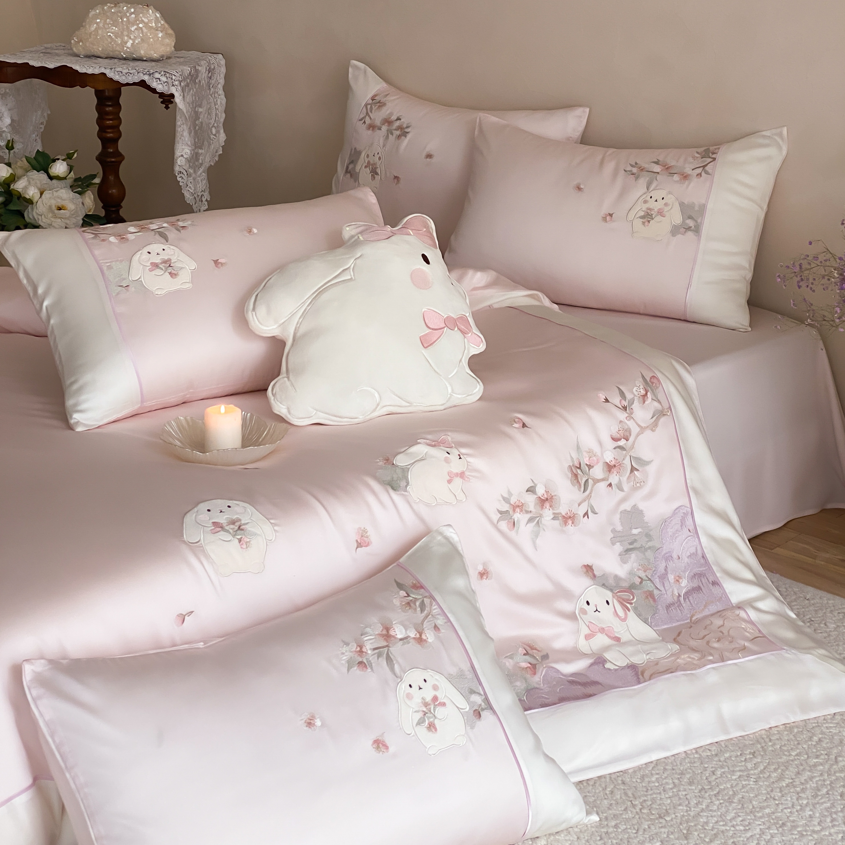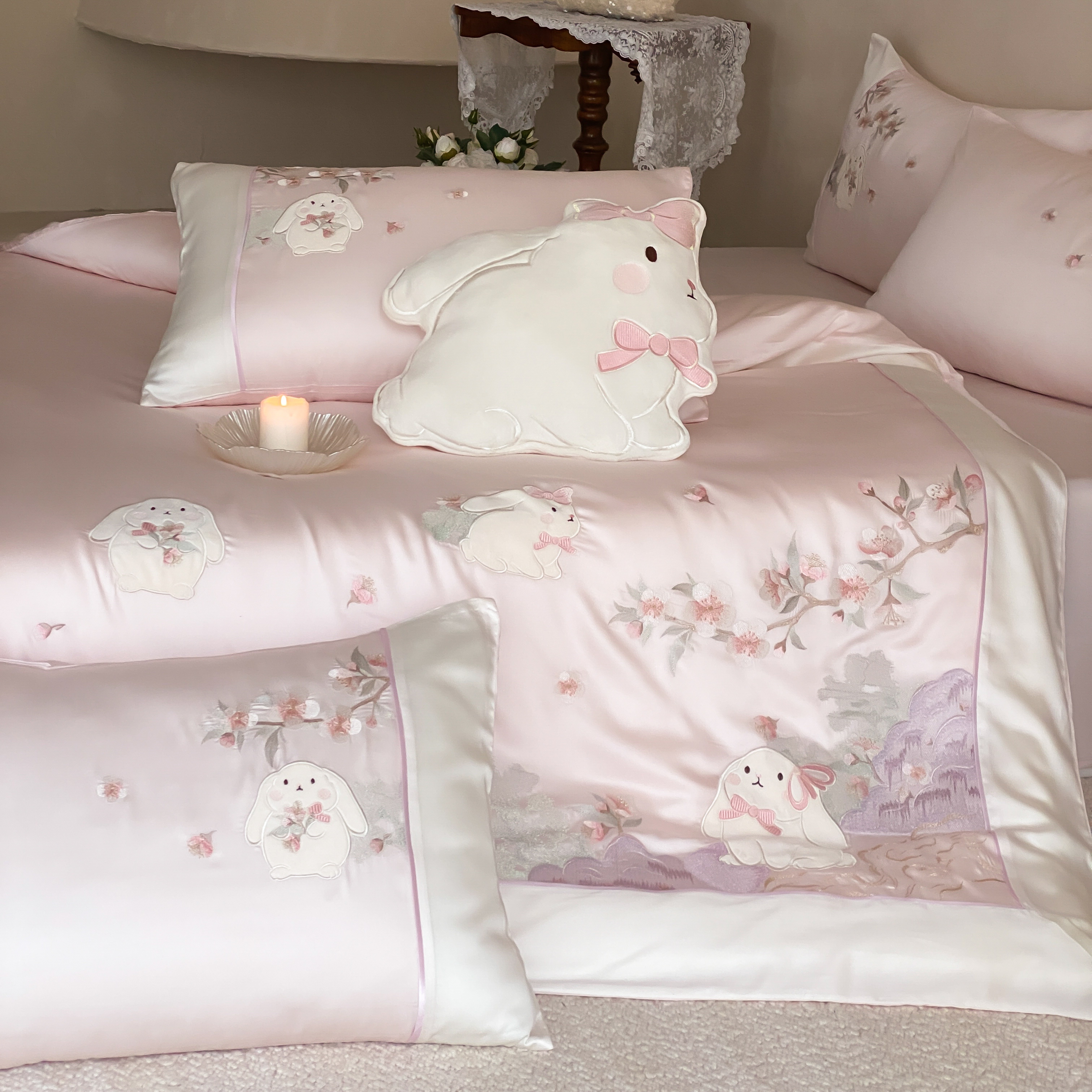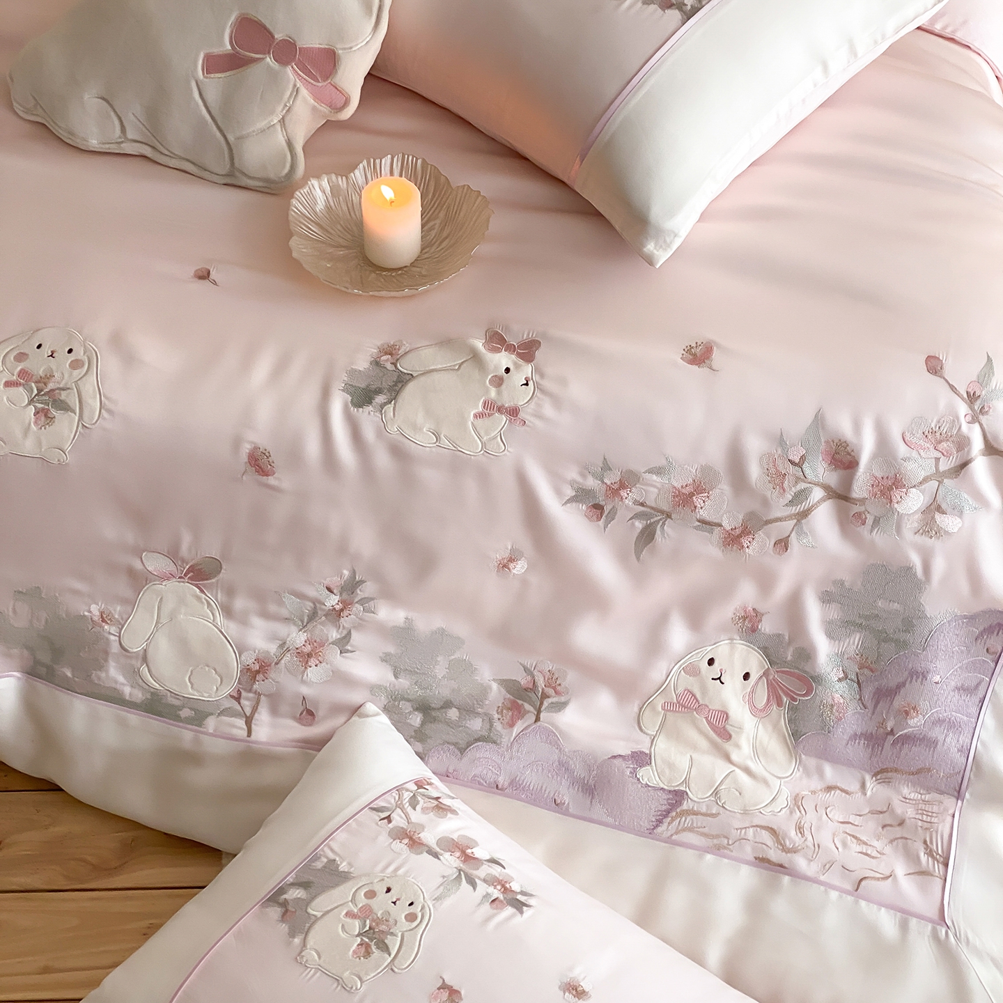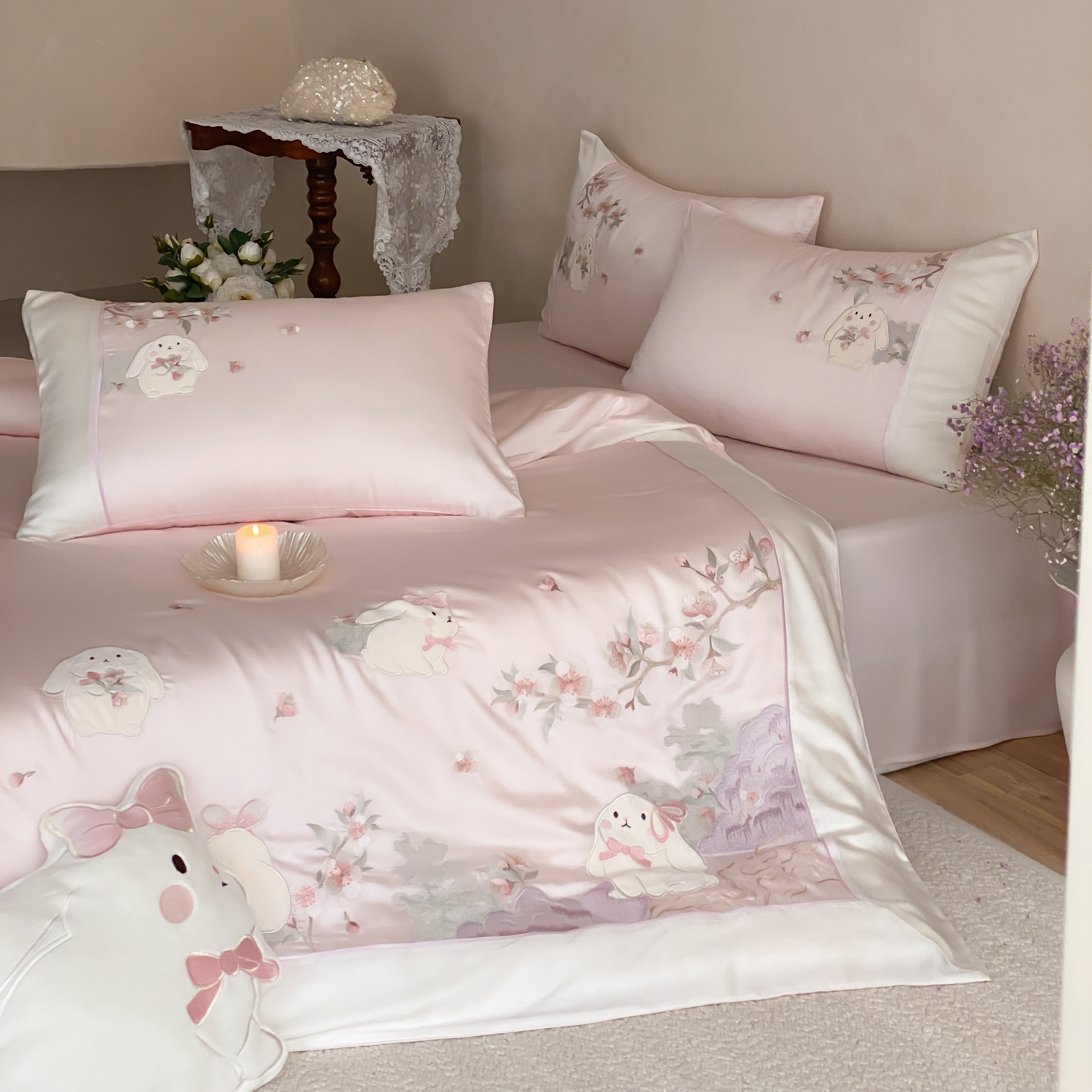 当前位置: 91家纺网 > 商品网购 > 床品套件 > 四件套 > 莱赛尔四件套 > (总)莎臣豹 2026新款莱赛尔天丝贴布绣四件套樱花树下
