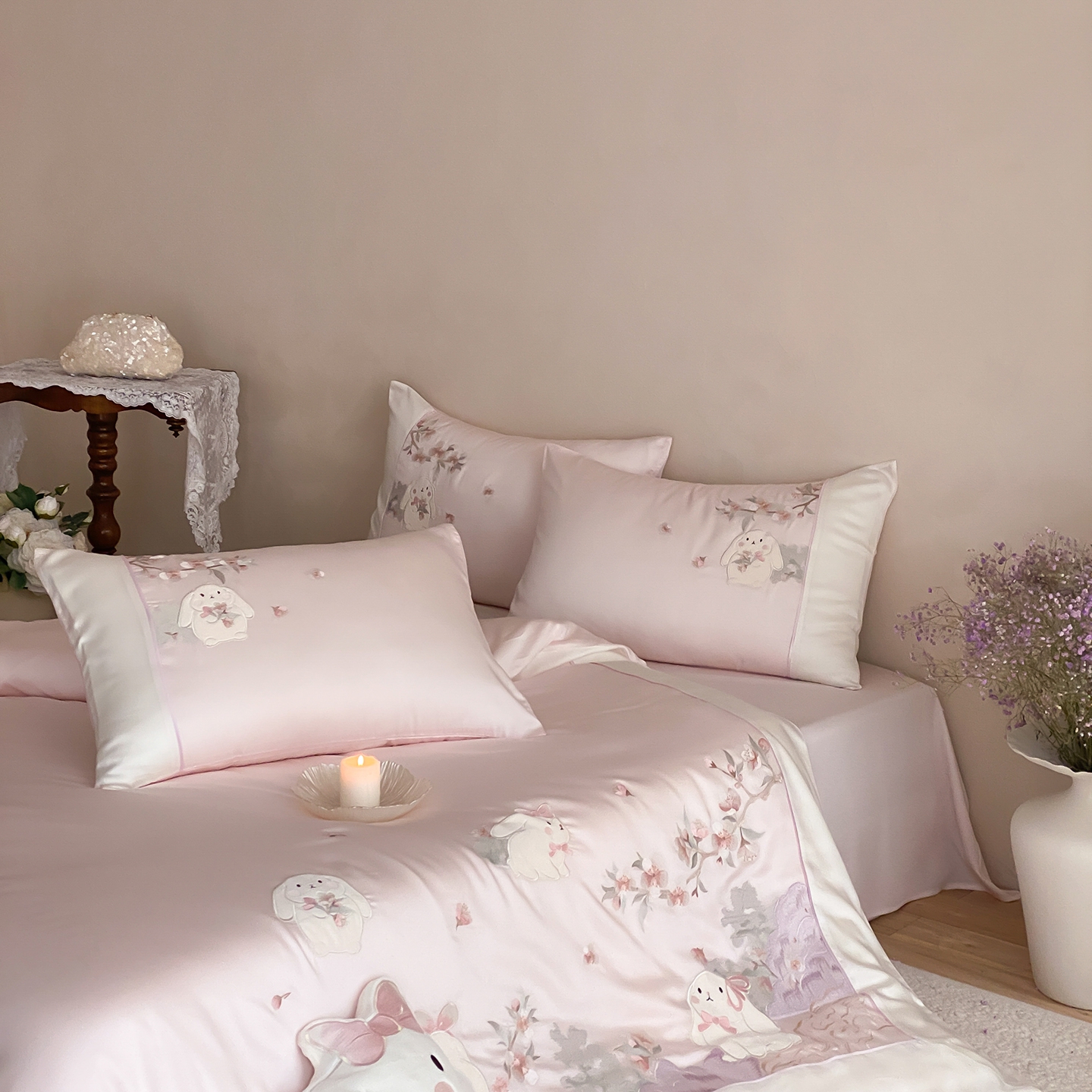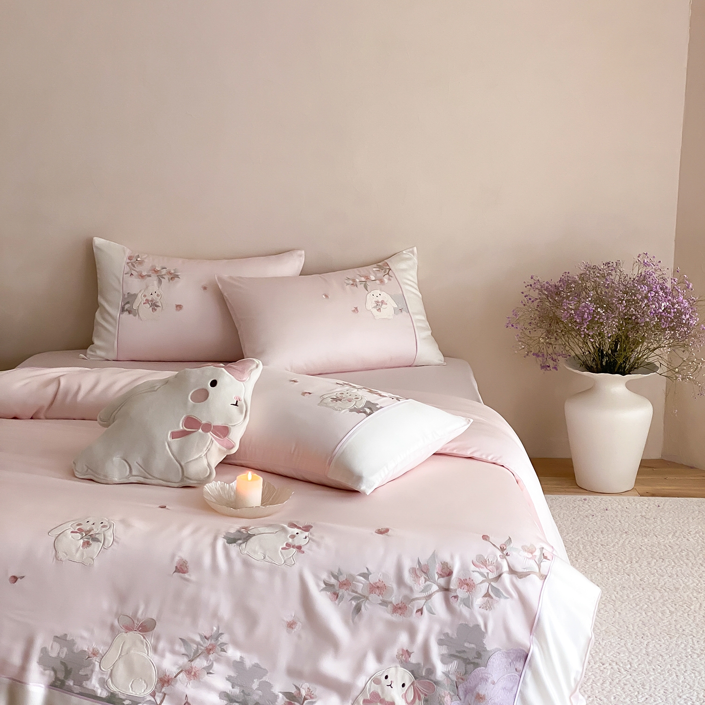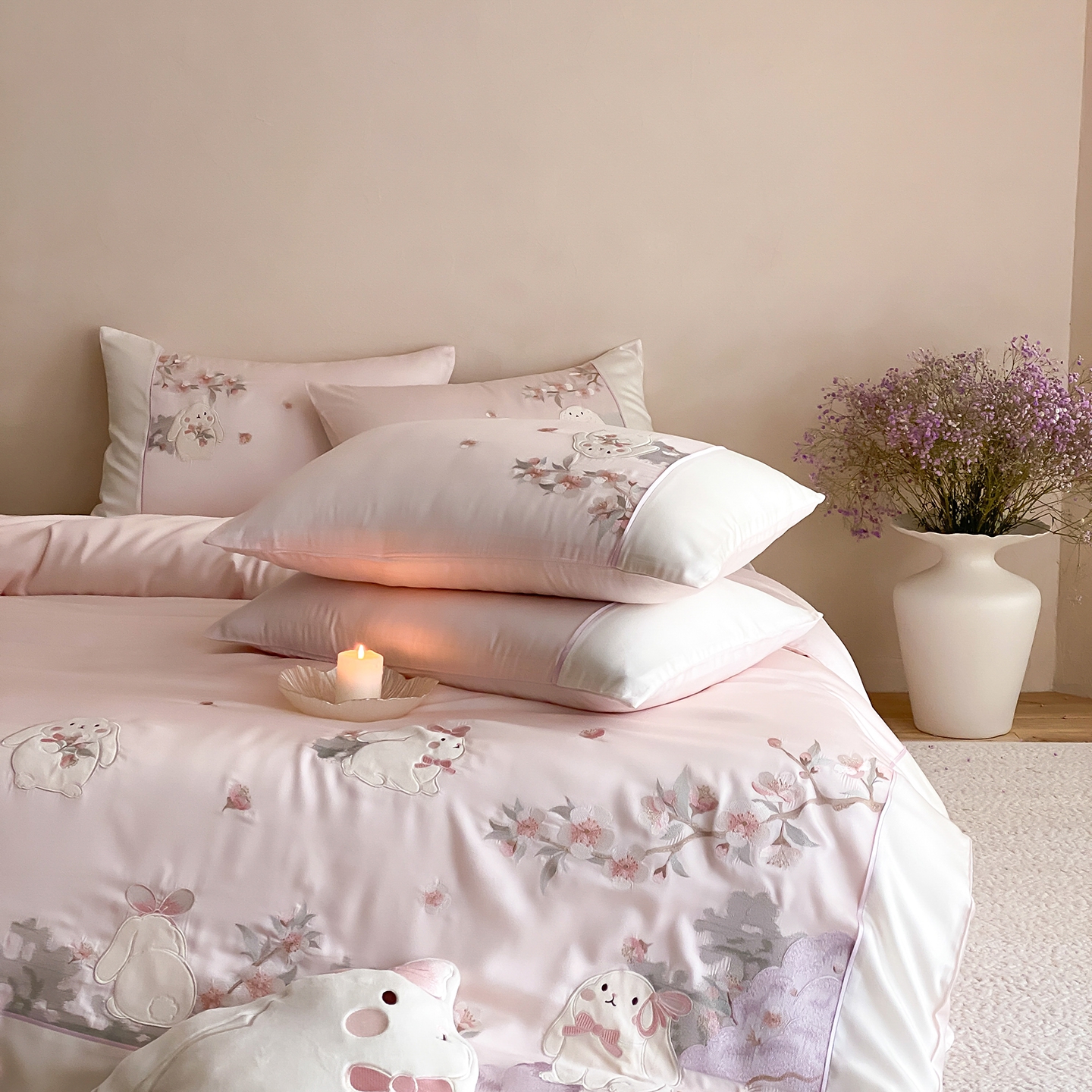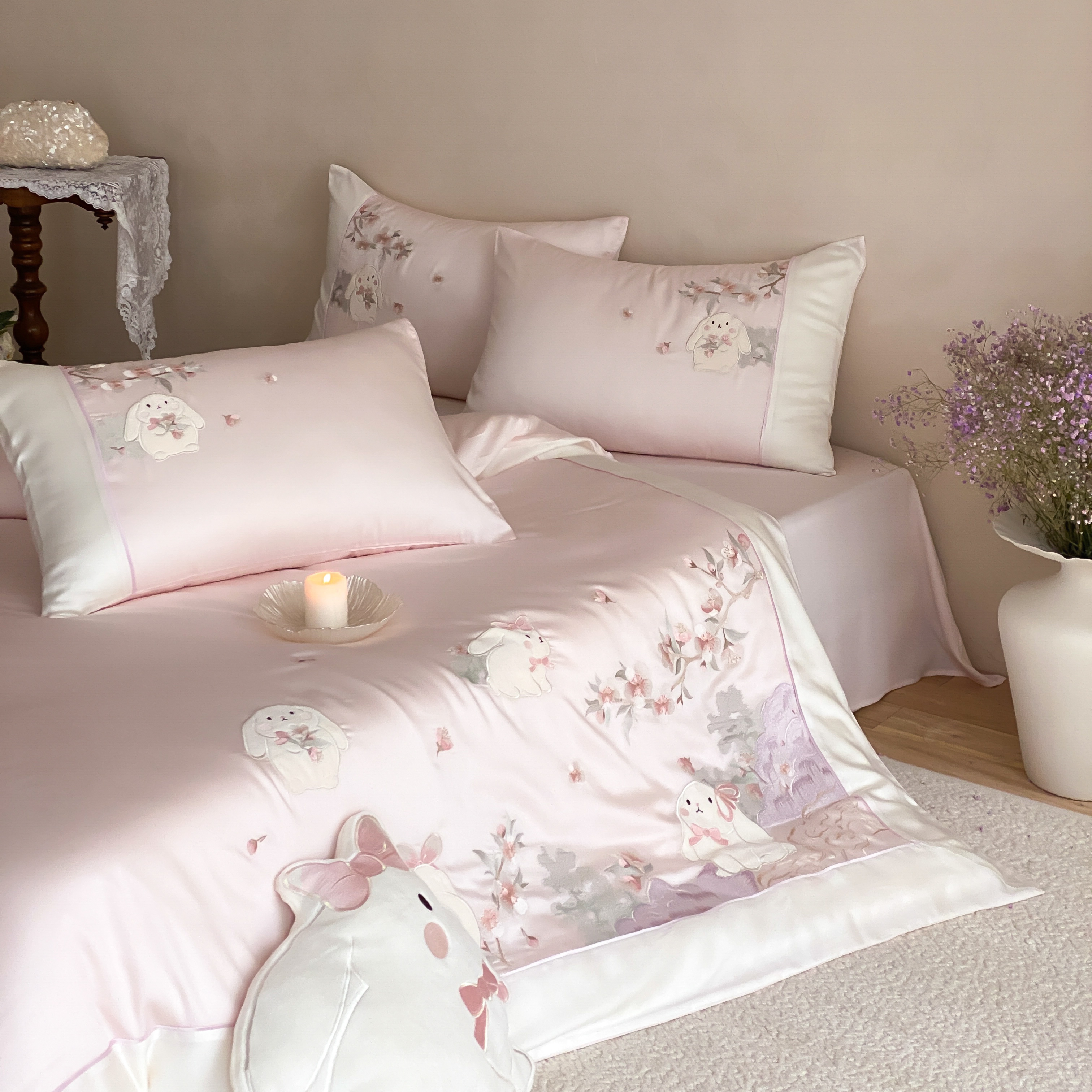 当前位置: 91家纺网 > 商品网购 > 床品套件 > 四件套 > 莱赛尔四件套 > (总)莎臣豹 2026新款莱赛尔天丝贴布绣四件套樱花树下