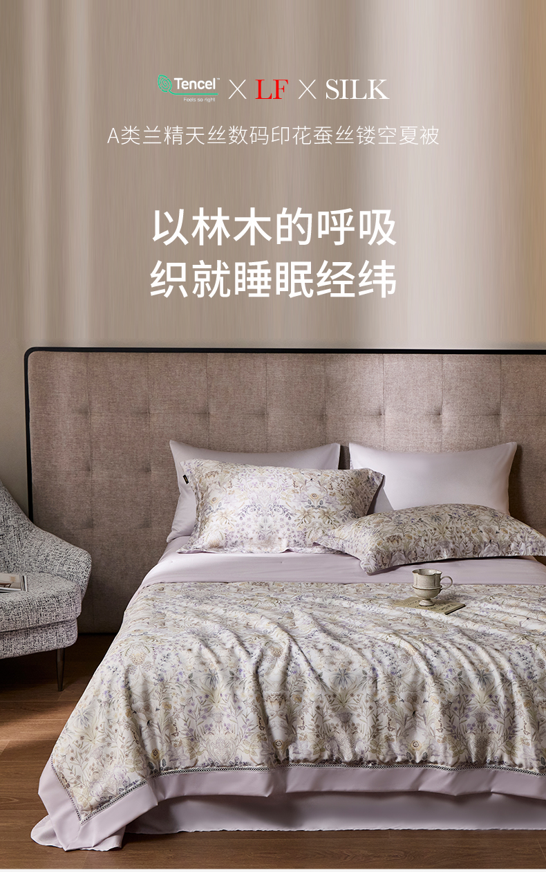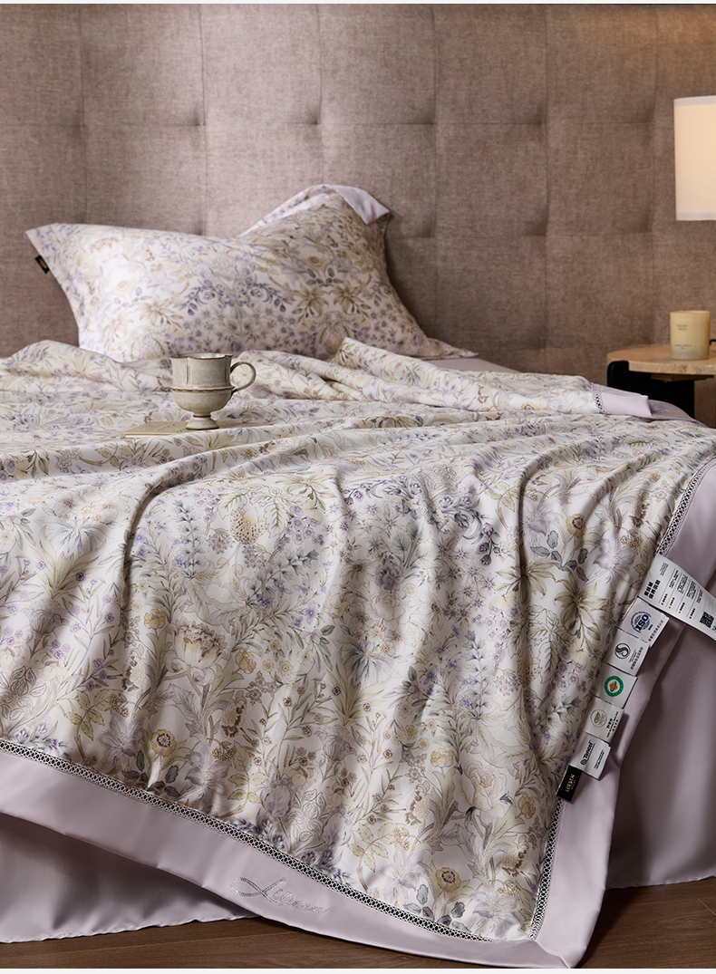 丽笙被芯 2026新款兰精天丝数码印花蚕丝镂空夏被夏凉被空调被 瑞纳斯-紫