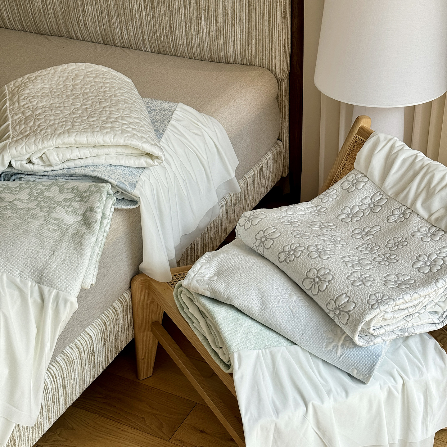 【可铺可盖】傲蕾AL BEDDING出口韩国高分子冰丝床盖款软凉席锦纶冰丝席可机洗夏被绗缝夹棉三件套,琉璃紫,清水绿,银光灰,运河蓝