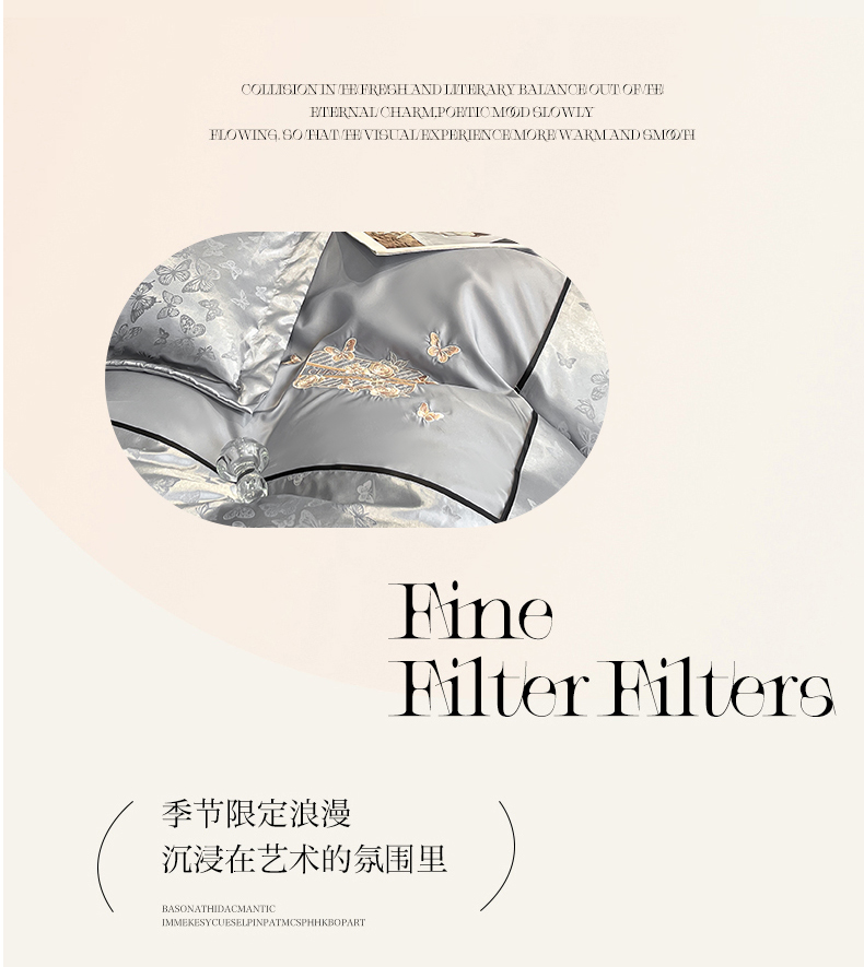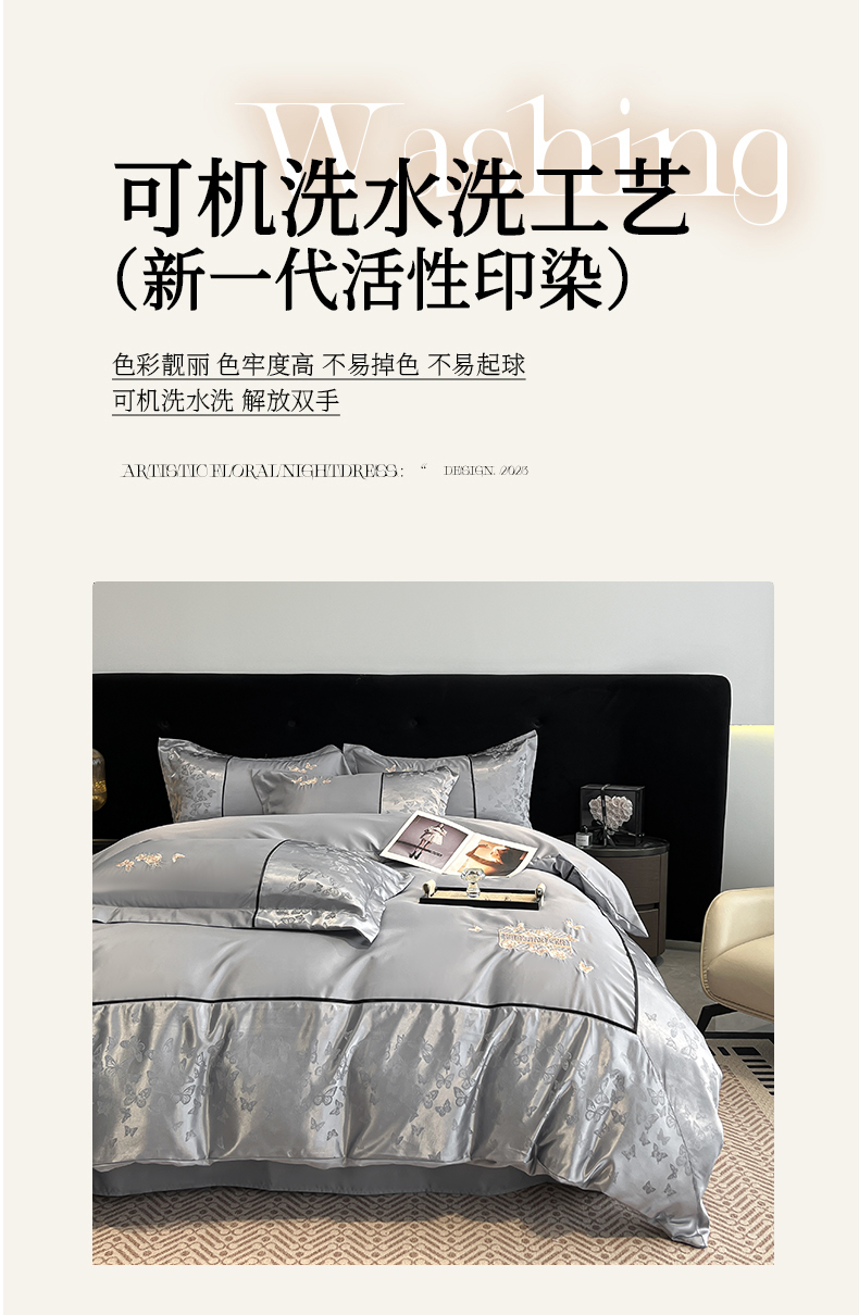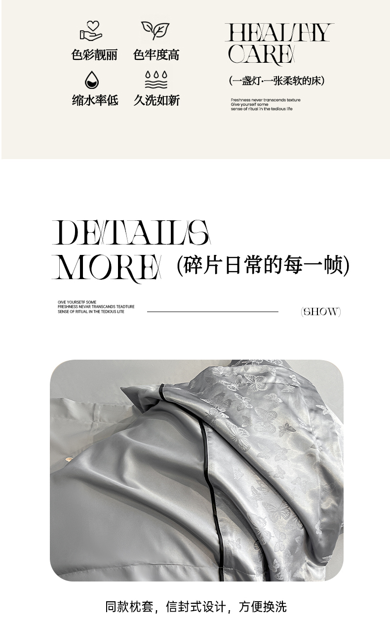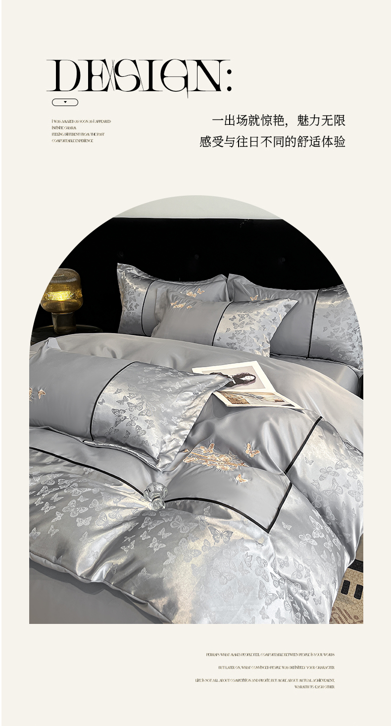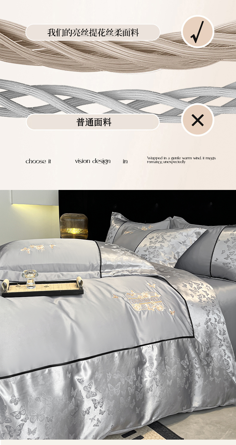 当前位置: 91家纺网 > 商品网购 > 床品套件 > 四件套 > 其它四件套 > 金牛座家纺 2026新款金牛座细斜纹贡缎亮丝提花大拼角刺绣床盖四件套-缇娜系列 缇娜-灰